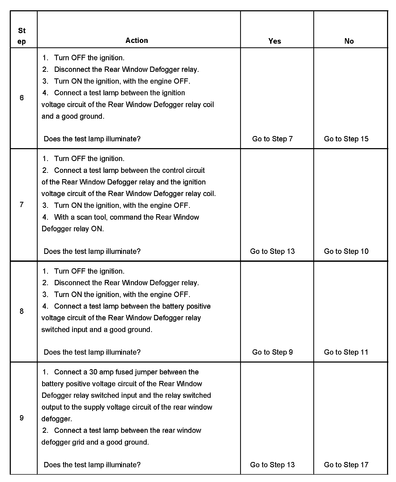5. Listen for an audible click when the Rear Window Defogger relay operates. Command both the ON and OFF states of the Rear Window Defogger relay. Repeat the commands as necessary.