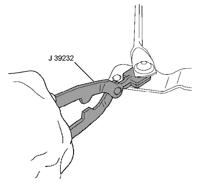 3. Using the J 39232 , disconnect the wiper transmission from the wiper motor crank arm.