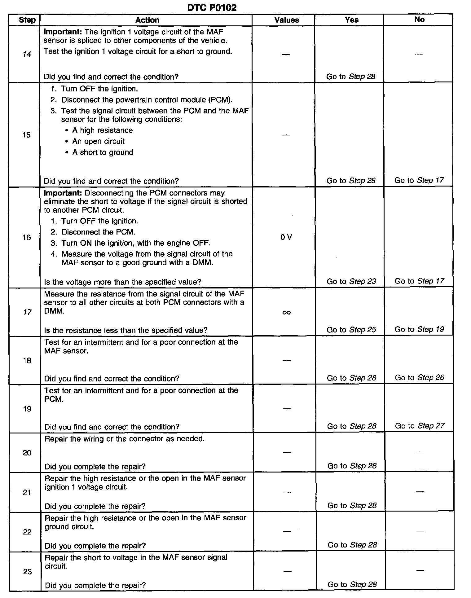 17. This step verities that the signal circuit is not shorted to any other PCM circuit.