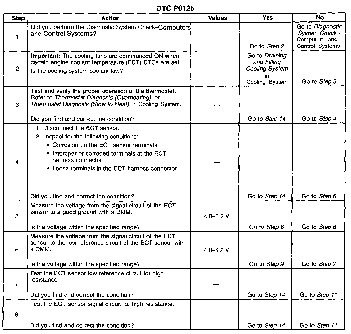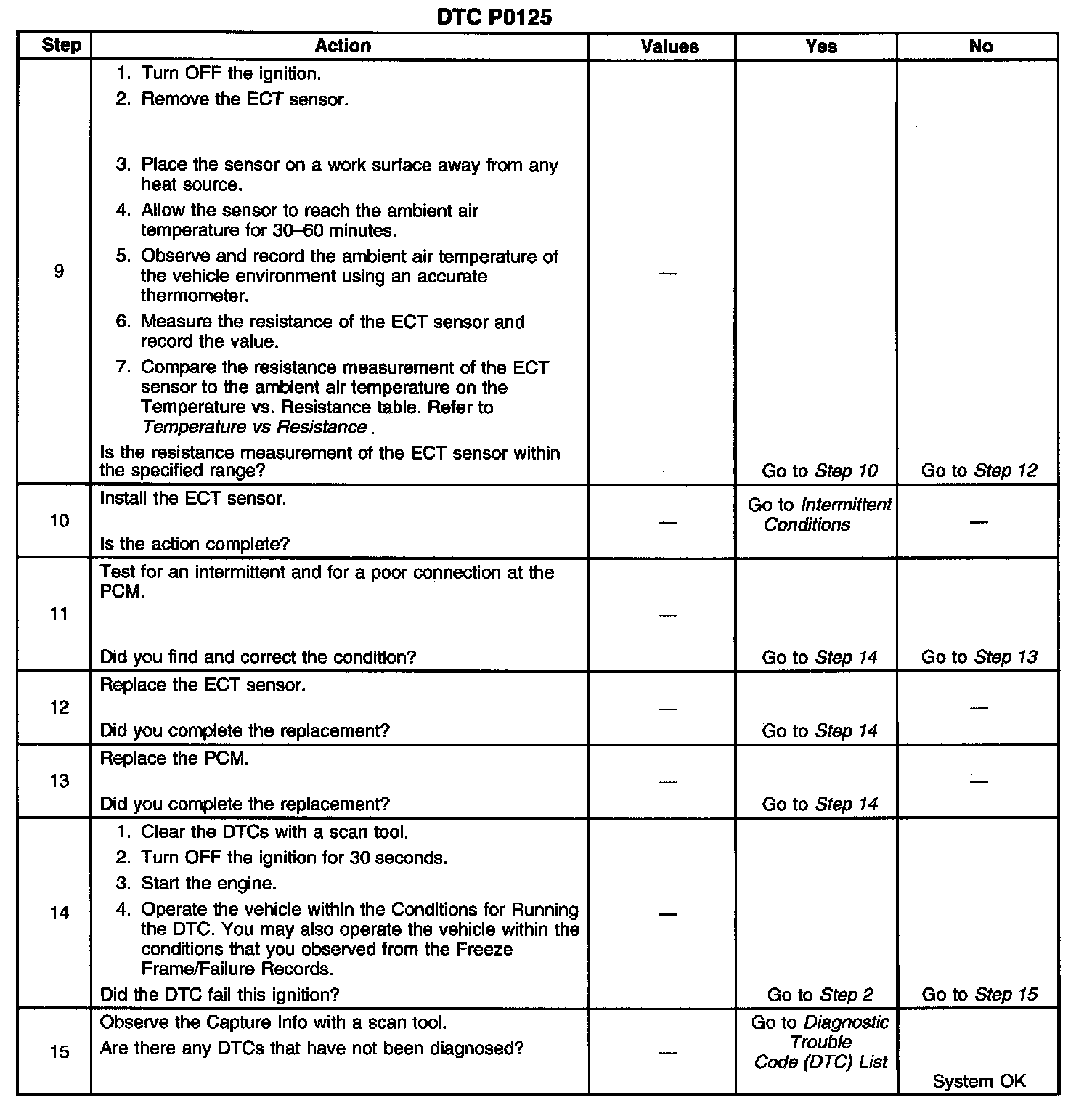If the PCM detects the calibrated amount of air flow and engine run time has been met and the engine coolant has not met the Closed Loop temperature, DTC P0125 sets.