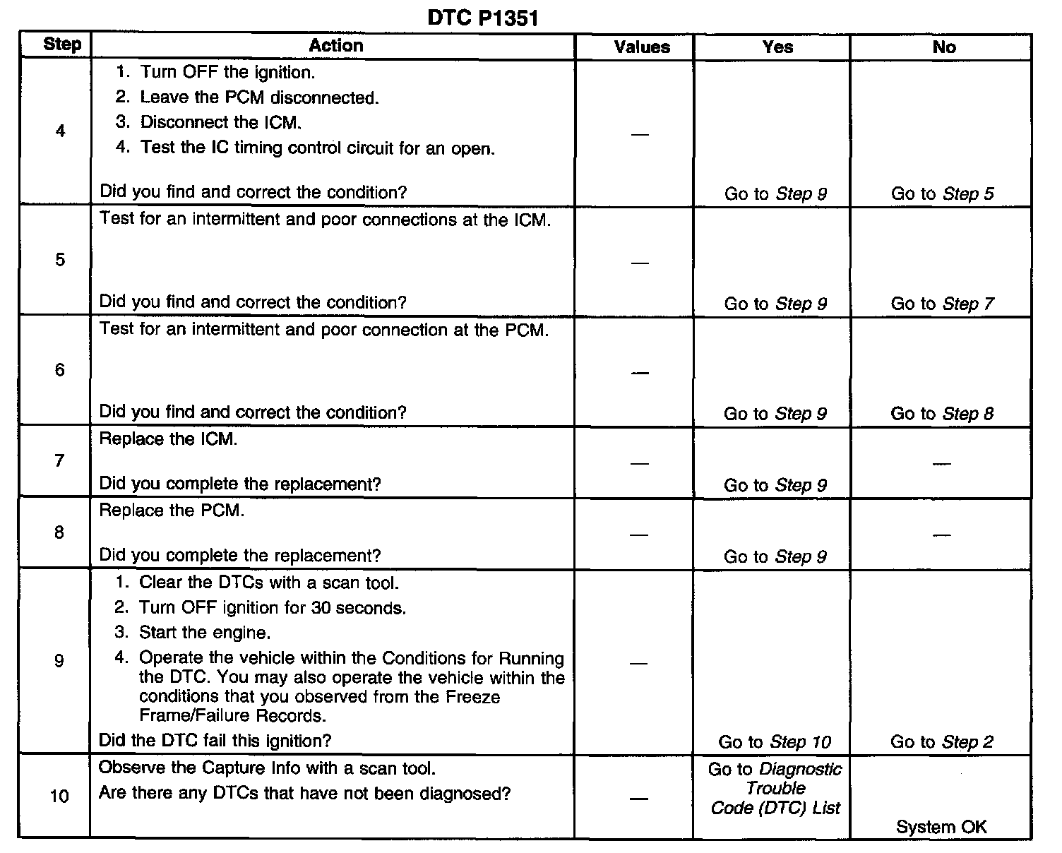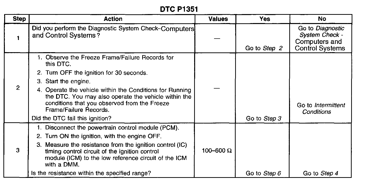 If the PCM detects an open in the IC timing control circuit, DTC P1351 sets.