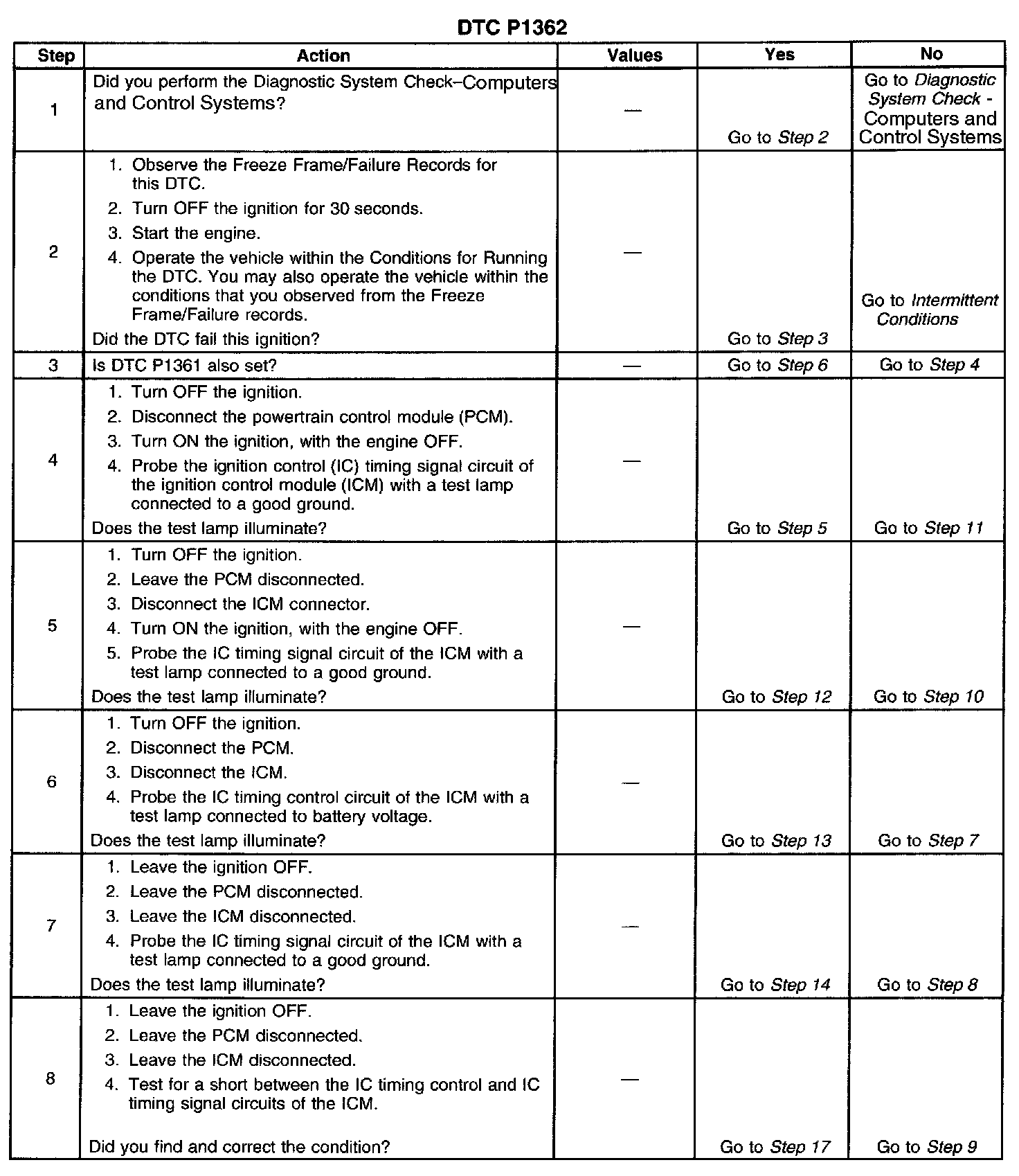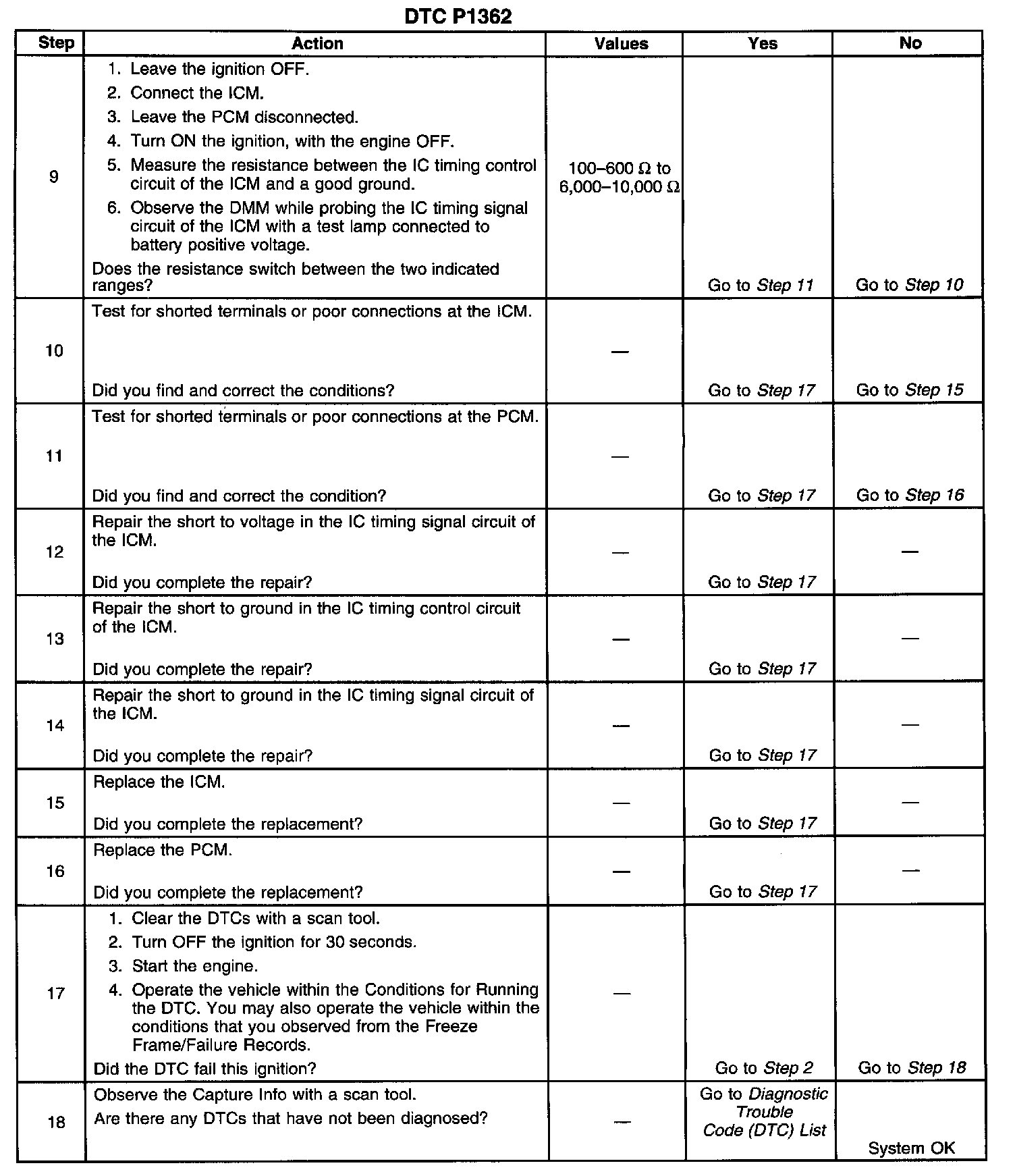 If the PCM detects a short to voltage in the IC timing signal circuit, DTC P1362 sets.
