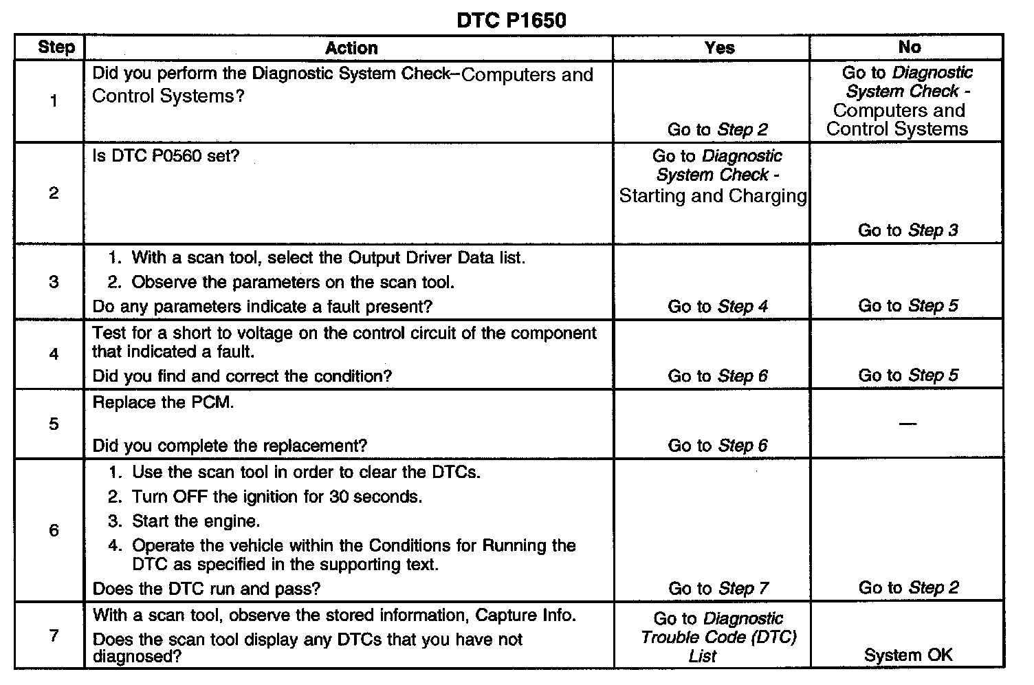 The output driver modules (0DM) are chips that are inside the powertrain control module (PCM). The ODMs provide grounded outputs that control devices. Each output has an internal feedback circuit that connects to the PCM microprocessor. The 0DM 2 determines if the voltage or the current may cause damage to the PCM. The PCM monitors voltage through the battery input. Any incorrect current that is on a circuit to the 0DM will cause the 0DM to report this DTC.