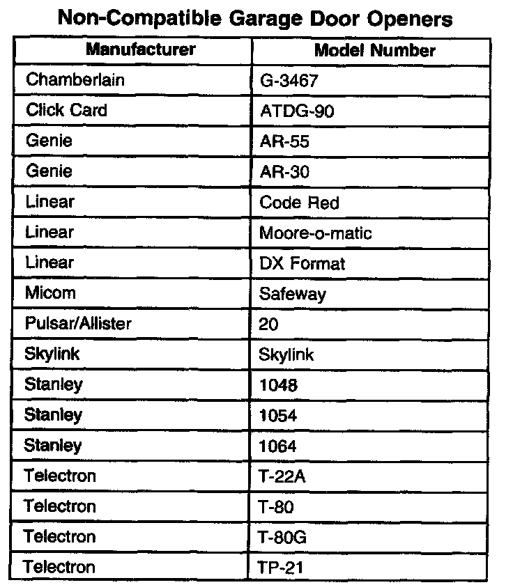 Non-Compatible Garage Door Openers: