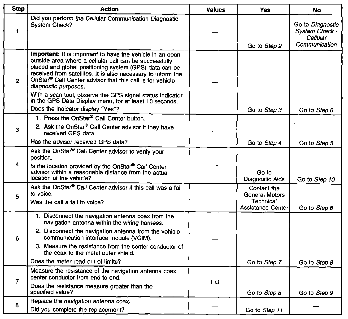 - Inaccurate or aged GPS position concerns made by a customer which are no longer present may have been due to the temporary loss of GPS signal reception by the vehicle. Conditions such as driving through tunnels or parking structures while making an OnStar(R) keypress will restrict the navigation antenna from a clear view of the satellites in the sky and may have caused this temporary data loss.