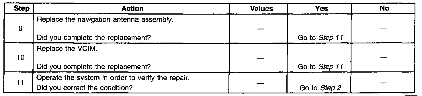 - The GPS Signal title on the scan tool will display a "Yes" or "No" dependant upon whether or not the module sees an increment of the seconds transmitted by GPS signals to the Vehicle Communication Interface Module. Upon entering this screen, the "GPS Signal" title will automatically display "Yes", regardless of the presence of time increment, for at least two seconds, while the algorithm in the scan tool determines the status of the clock. If increment is found, "Yes" is continually displayed.