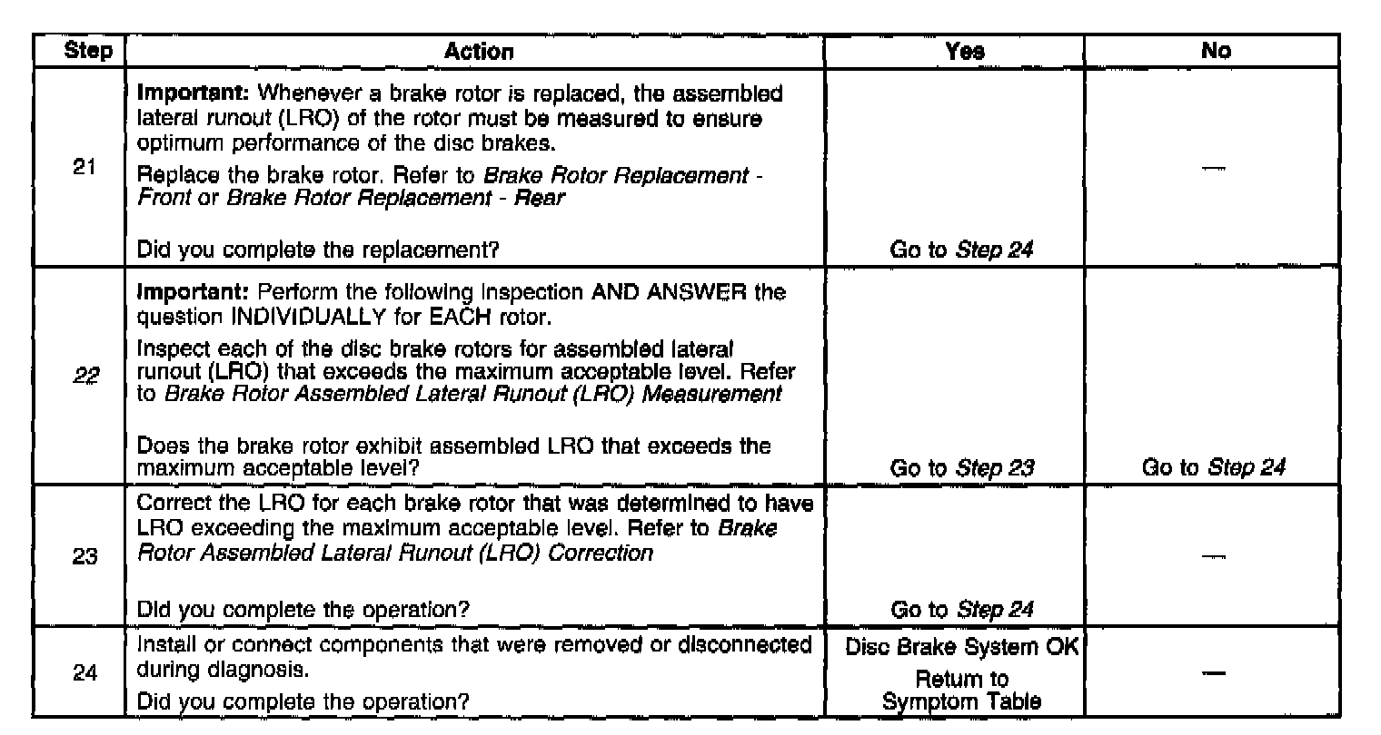 22. Disc brake rotor assembled lateral runout (LRO) that exceeds the maximum acceptable level can lead to thickness variation.