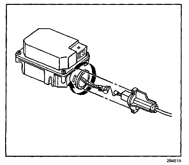 2. Rotate the cruise control cable counterclockwise. Remove the cruise control cable from the cruise control module.