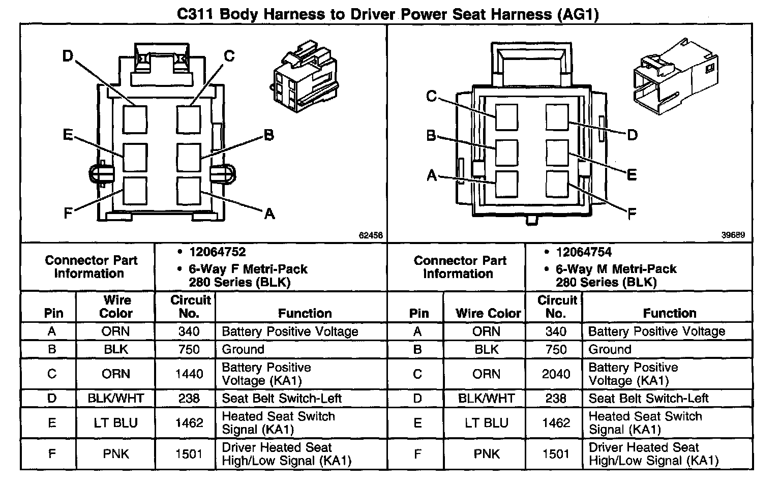 C311 Body Harness To Driver Power Seat Harness (With RPO Code AG1):