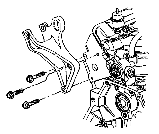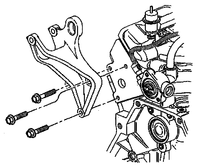 2. Install the engine mount strut bracket bolts through the engine mount strut bracket to the cylinder head.