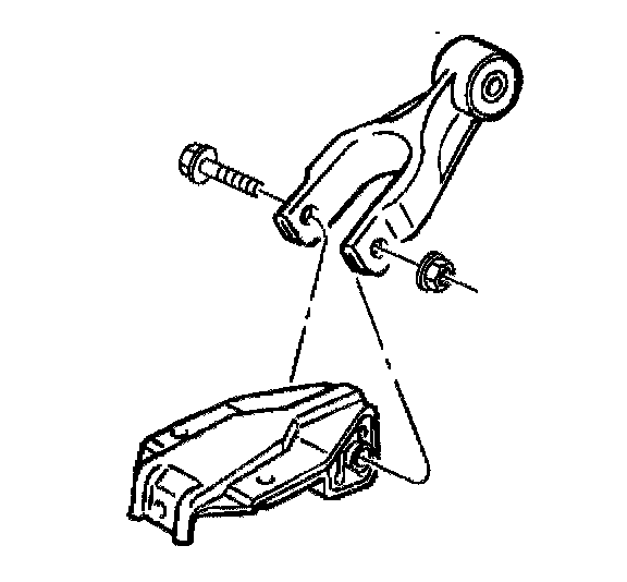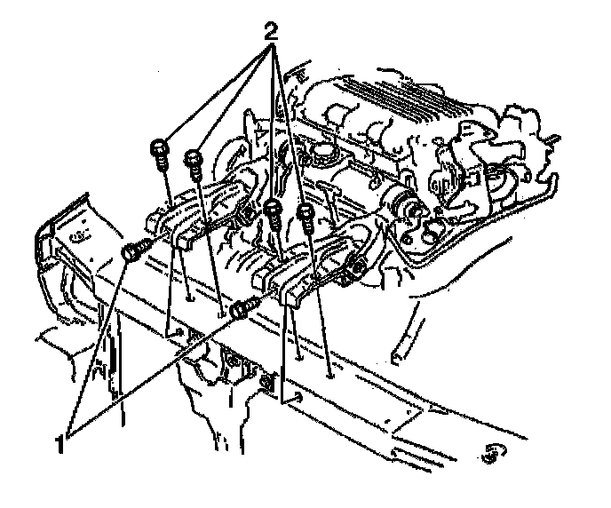 1. Position the engine mount strut bracket over the upper radiator support. Make sure that the engine mount strut bracket and the engine-mount strut are aligned to the proper holes of the upper radiator support. The proper torque sequence is shown (1, 2).