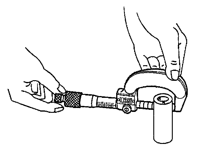 10. Measure the piston pin diameter using an outside micrometer.