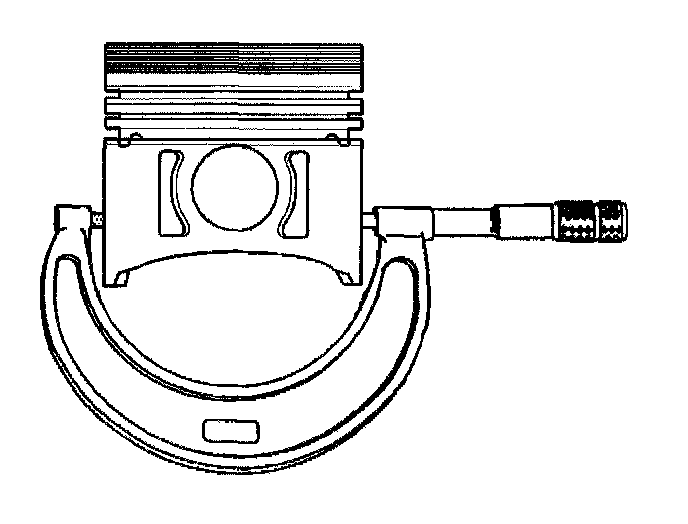 14. Measure the piston diameter with a micrometer at a right angle to the piston bore with the piston pin removed, and record the measurement. Measure the piston at 49.8 mm (1.9606 inch) from dome of piston. Piston diameter must measure 88.966 - 88.984 mm (3.5026 - 3.5033 inch). Replace the piston and the pin as an-assembly if the piston is not within specifications.