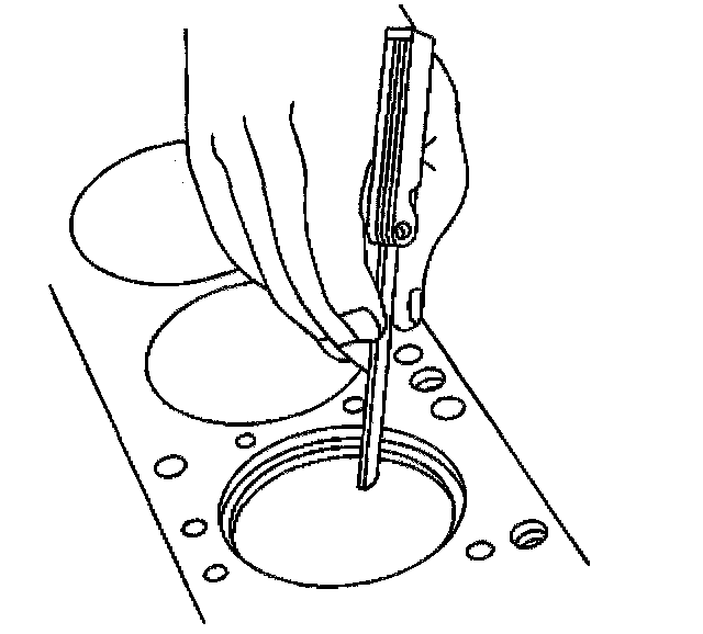 7. Measure the piston ring side clearance with a feeler gage.