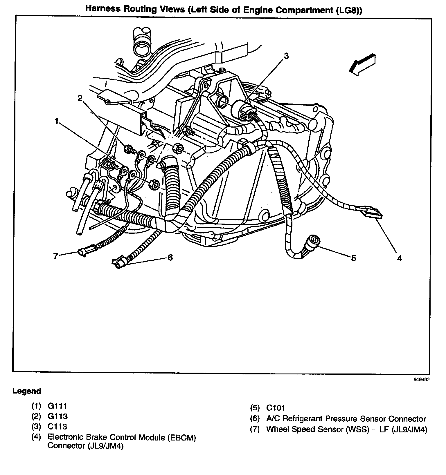 Harness Routing Views (Left Side Of Engine Compartment):