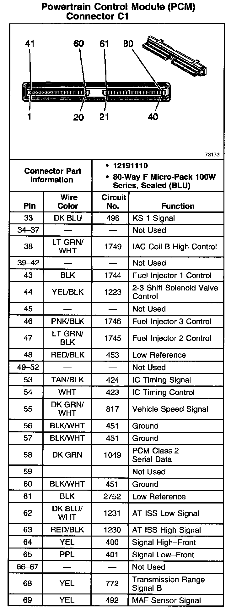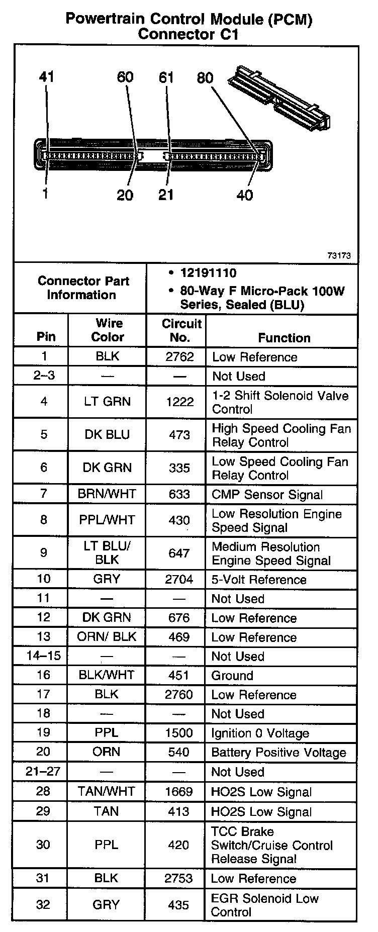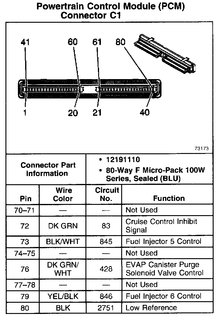 Powertrain Control Module (PCM) Connector C1 Part 1: