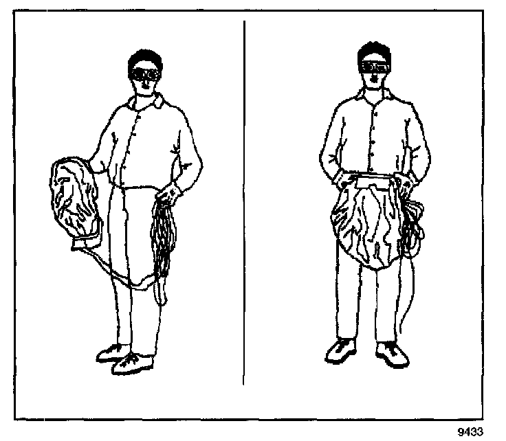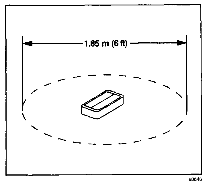 6. Clear a space on the ground about 1.85m (6 ft) in diameter for deployment of the inflator module. If possible, use a paved, outdoor location free of activity. Otherwise, use a space free of activity on the shop floor. Make sure you have sufficient ventilation.