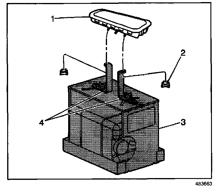 12. Short the 2 SIR deployment harness (1) leads together using one banana plug seated into the other.