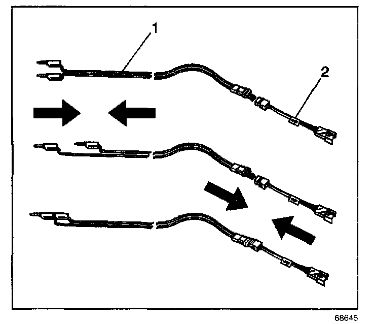 13. Connect the appropriate pigtail adapter (2) to the SIR deployment harness (1).