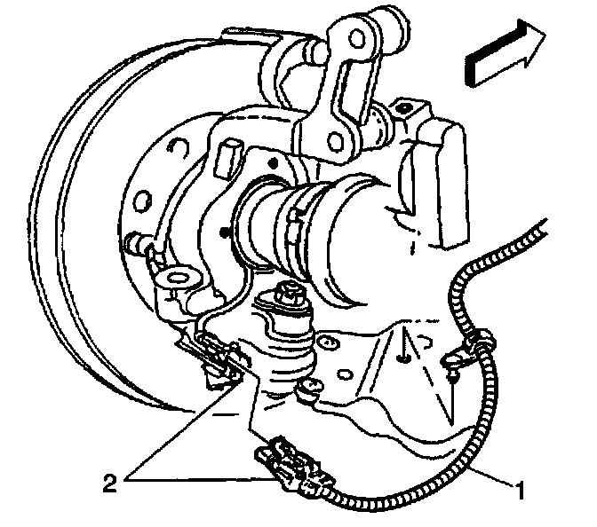 4. Disconnect the ABS wheel speed sensor connector (2), if equipped.