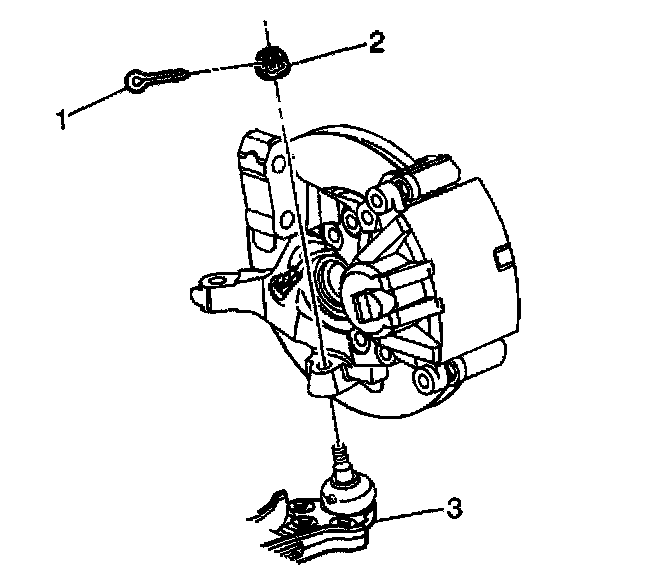 7. Remove the cotter pin (1) from the ball stud (3).