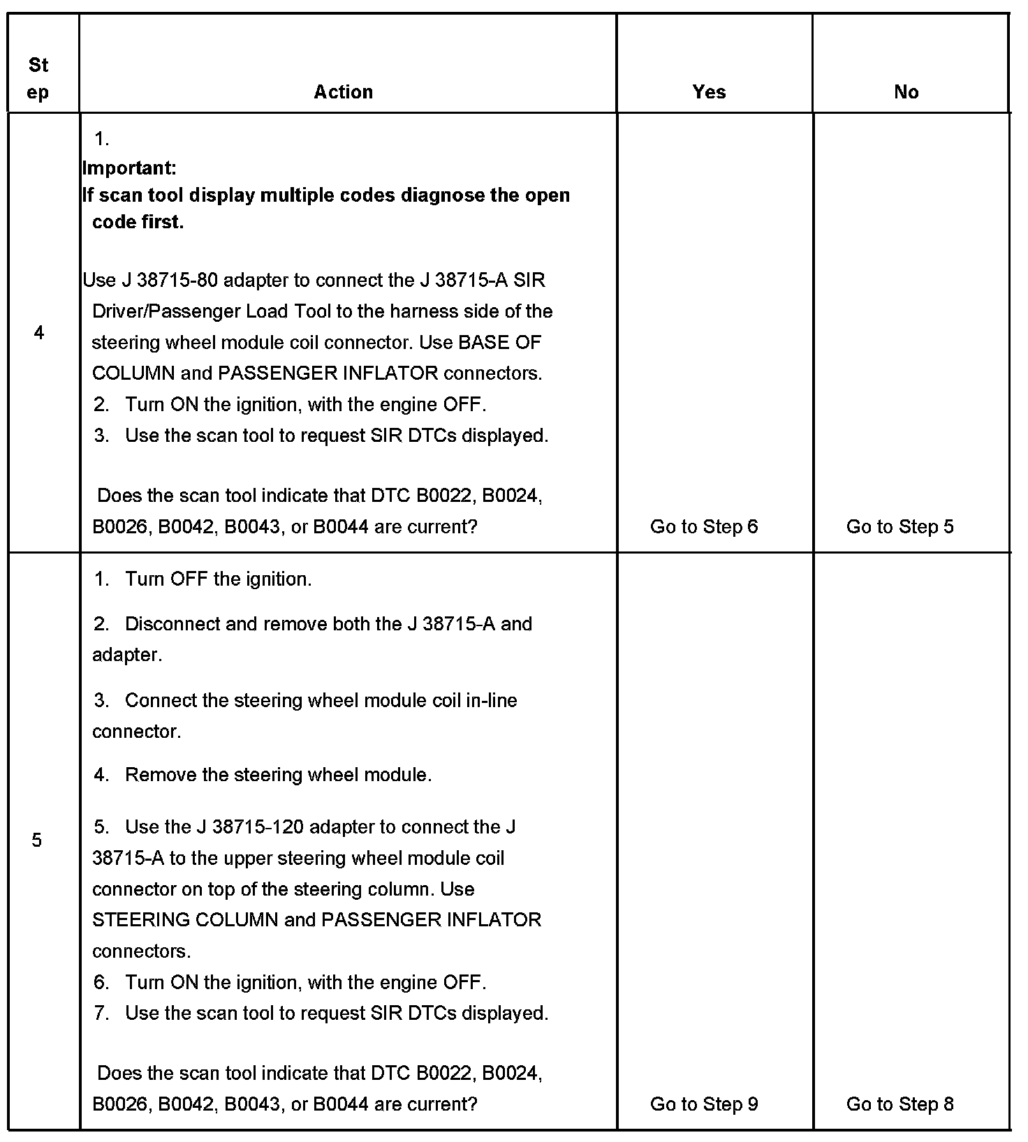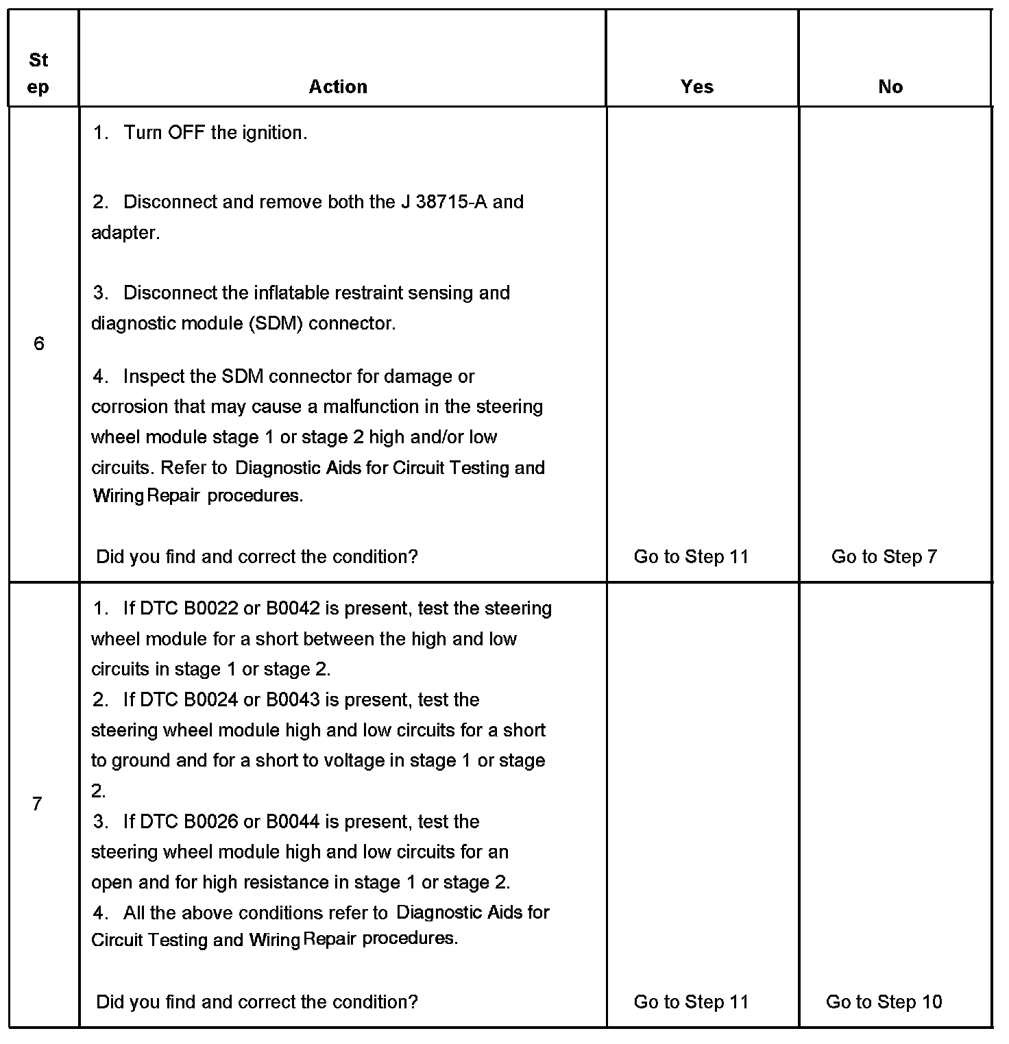 ^ DTC B0022-stage 1 or B0042-stage 2 will set when the steering wheel module deployment loop resistance is less than 1.3 ohms for 500 milliseconds.