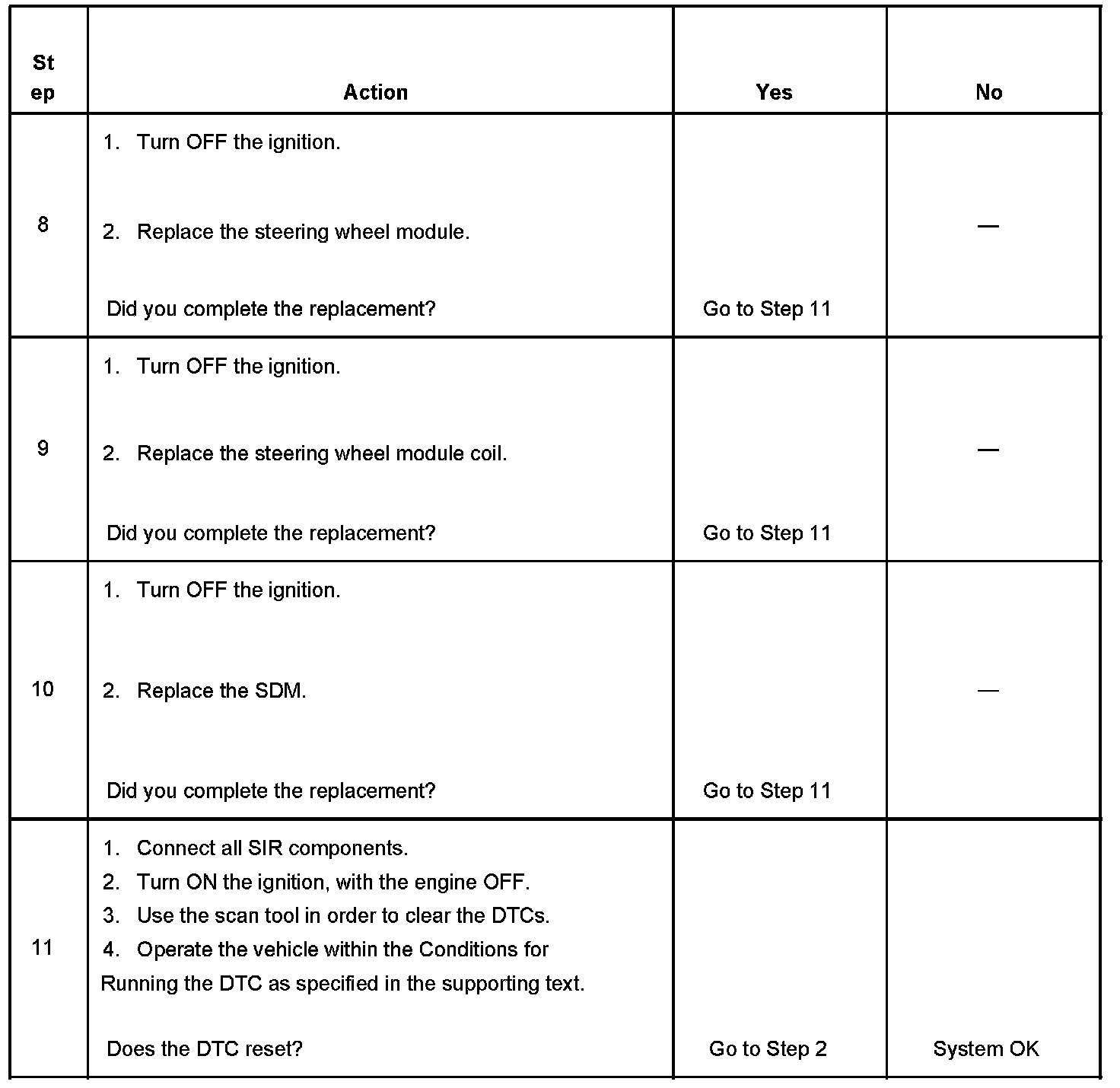 ^ The condition responsible for setting the DTC no longer exists and the scan tool Clear DTCs function is used.