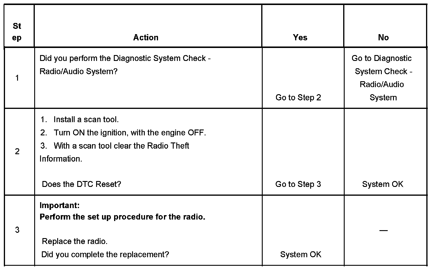 Re-calibration with the correct calibrations for the vehicle and cycling the radio to OFF then to ON will clear the DTC if there is no damage to the radio.