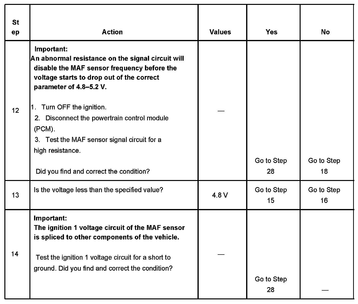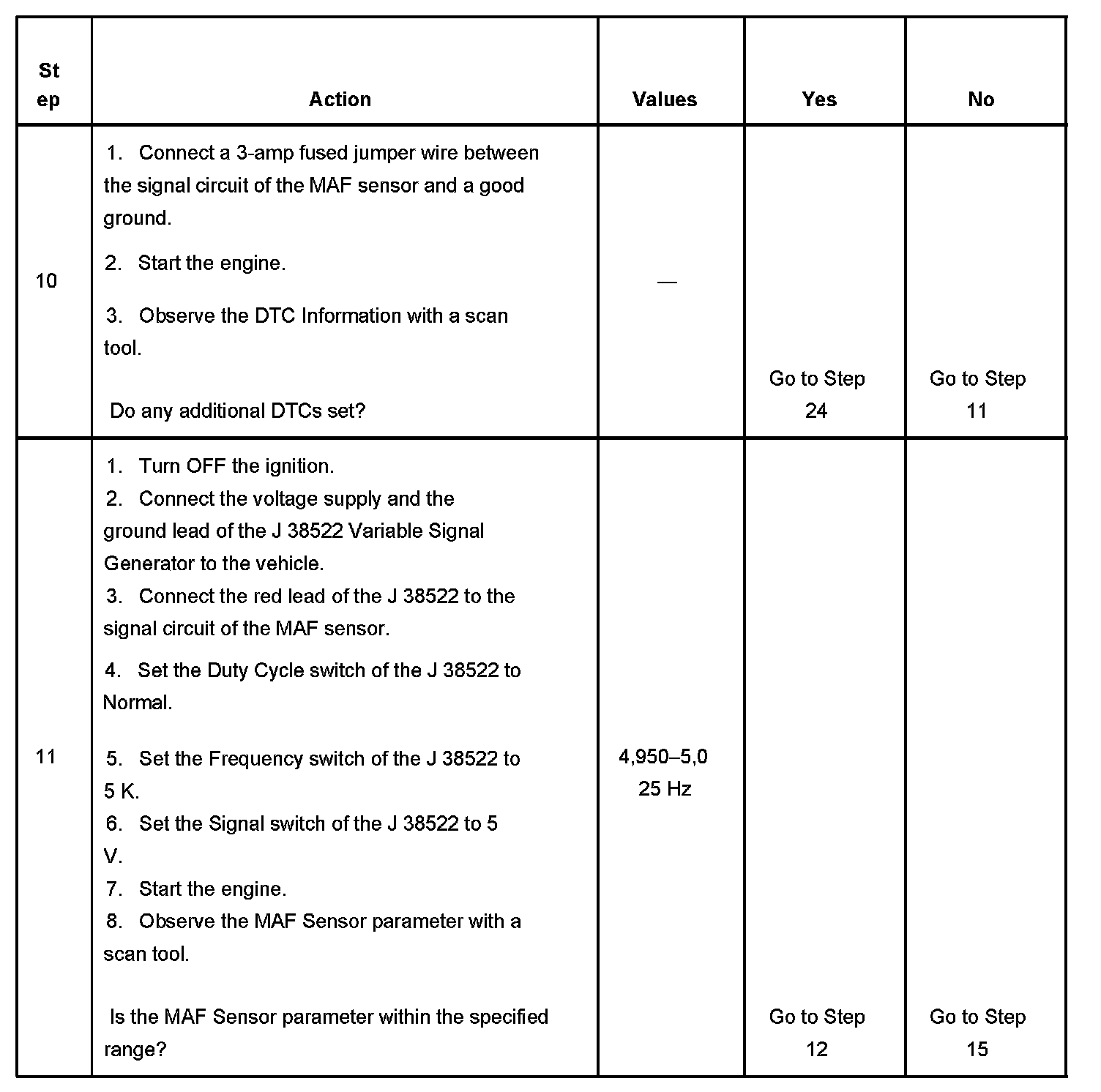 11. This step will determine if the PCM is able to process the frequency signal that it receives from the MAF sensor.