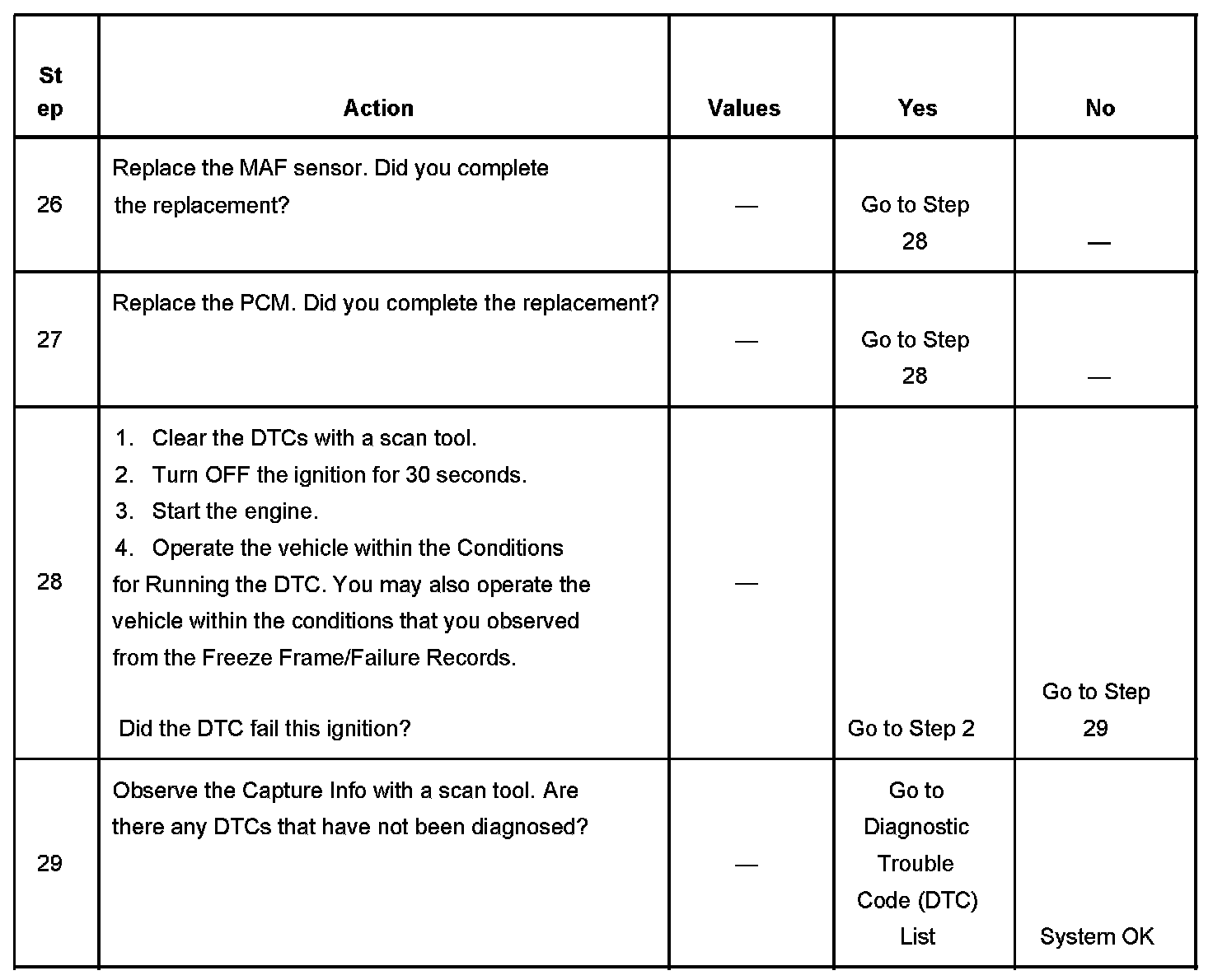 - A current DTC, Last Test Failed, clears when the diagnostic runs and passes.