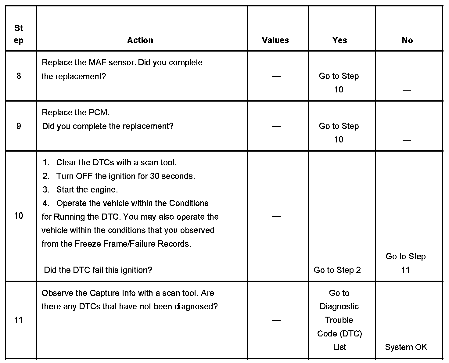- A current DTC, Last Test Failed, clears when the diagnostic runs and passes.