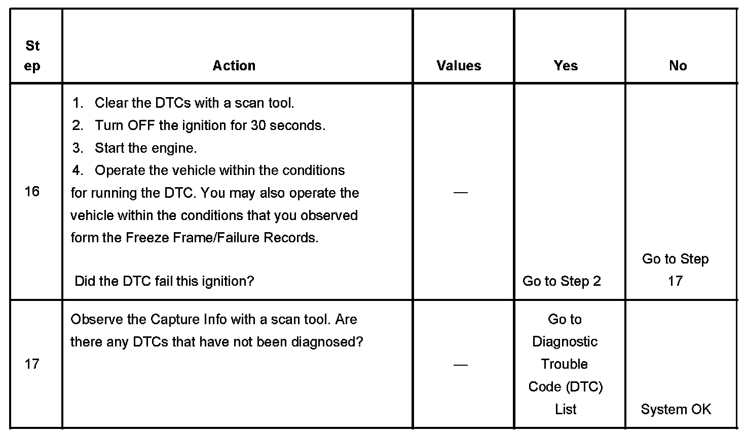 - A current DTC, Last Test Failed, clears when the diagnostic runs and passes.