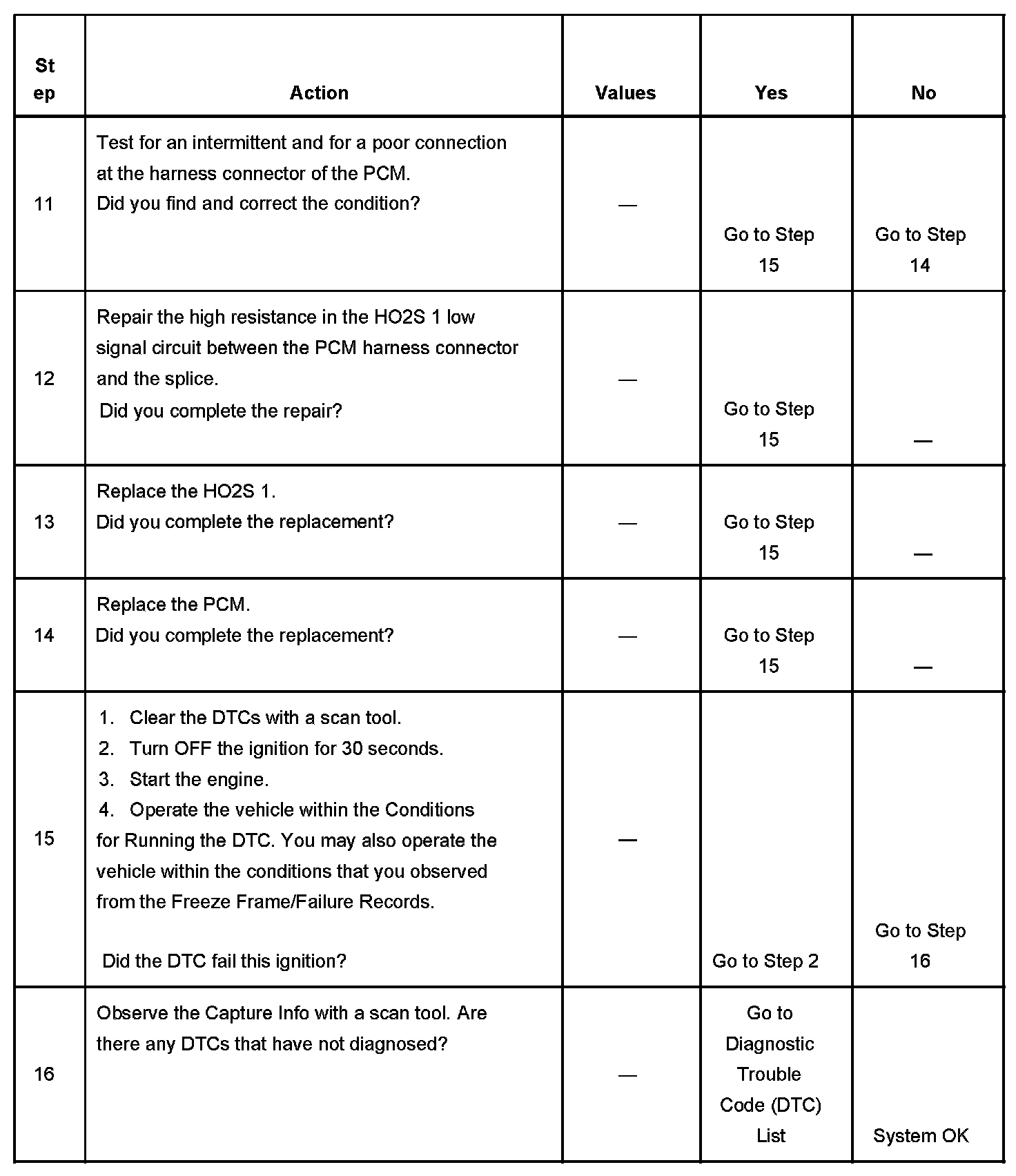 The PCM detects that the HO2S 1 signal voltage remains between 382-525 mV for more than 30 seconds.