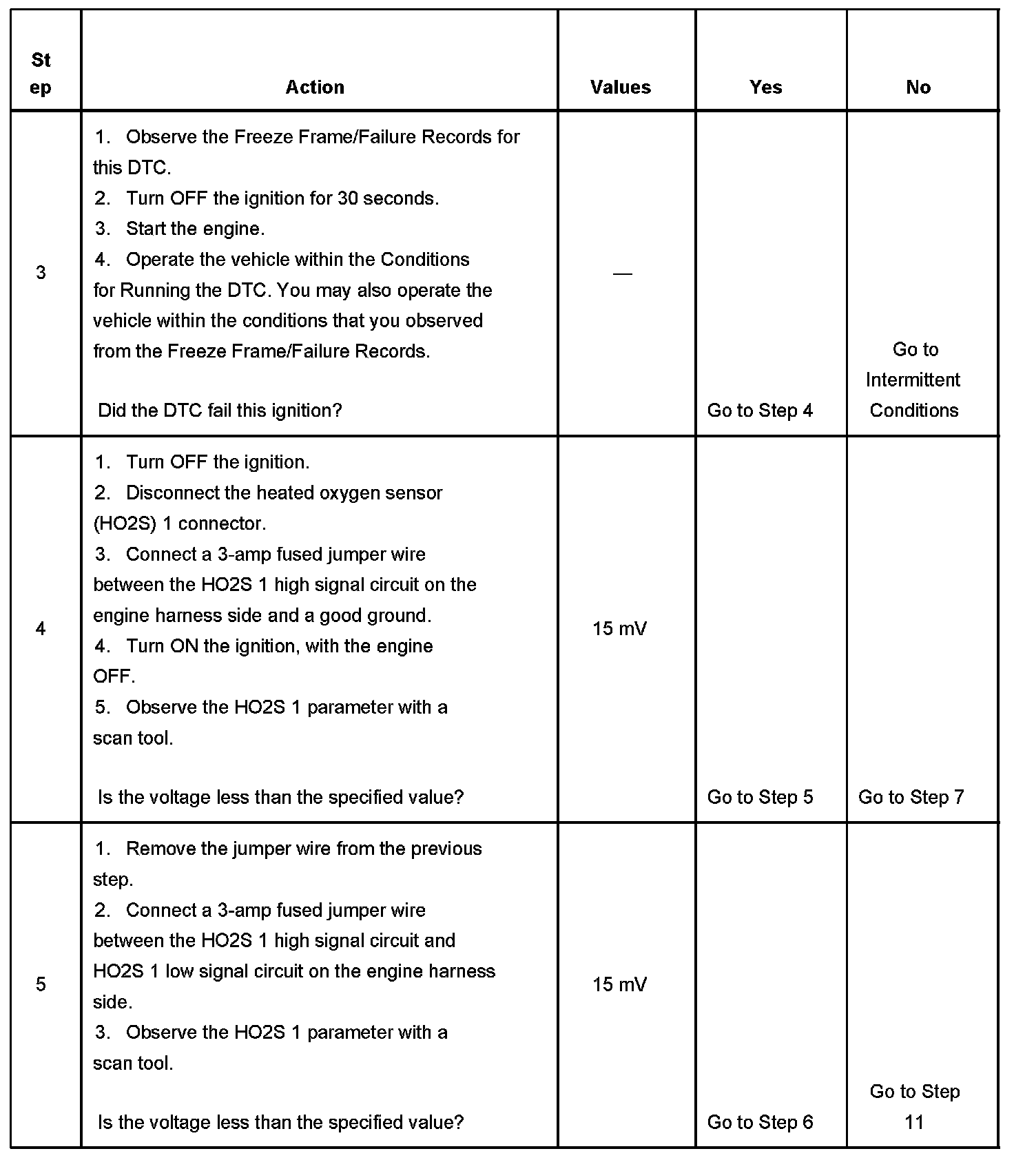 Heated oxygen sensors (HO2S) are used for fuel control and post catalyst monitoring. Each HO2S compares the oxygen content of the surrounding air with the oxygen content of the exhaust stream. When the vehicle is first started, the powertrain control module (PCM) operates in an Open Loop mode, ignoring the HO2S signal voltage when calculating the air-to-fuel ratio. The PCM supplies the HO2S with a reference, or bias, voltage of about 450 mV. The HO2S generates a voltage within a range of 0-1,000 mV that fluctuates above and below bias voltage once the sensor reaches operating temperature. A high HO2S voltage output indicates a rich fuel mixture. A low HO2S voltage output indicates a lean mixture. Heating elements inside the HO2S minimize the time required for the sensors to reach operating temperature, and provide an accurate voltage signal. If the PCM detects that the HO2S 1 voltage average response time is too slow, DTC P0133 will set. This DTC runs once per trip.