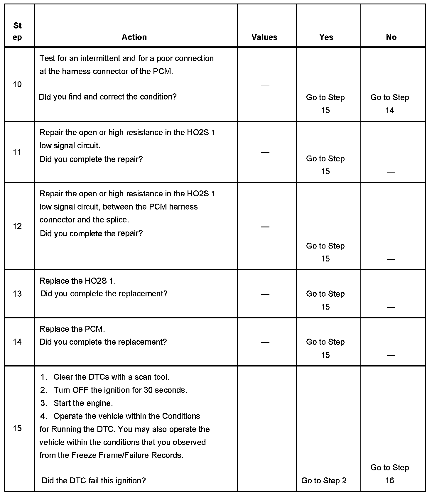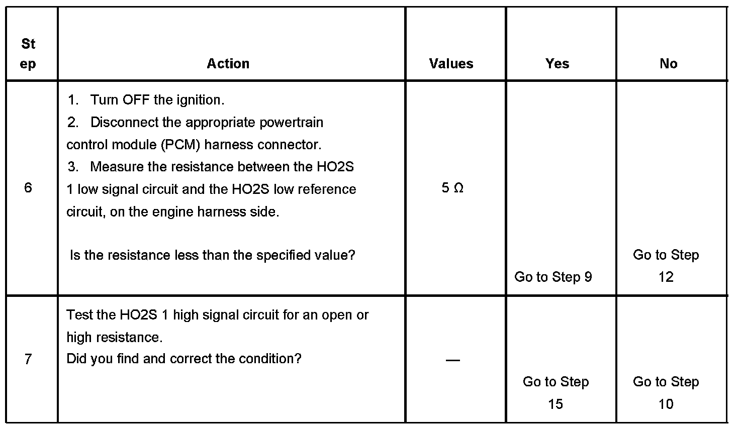 - An HO2S 1 low signal circuit