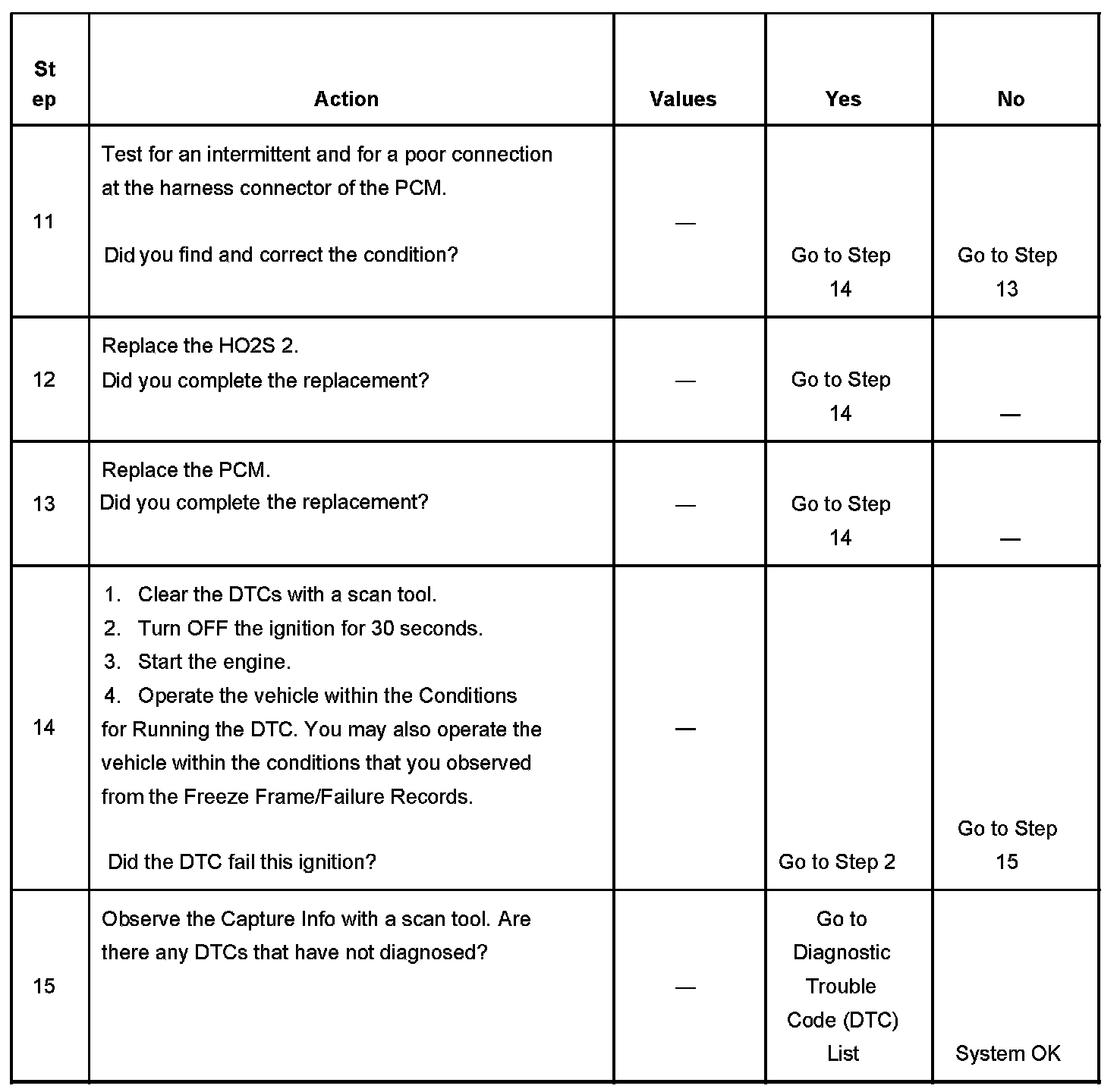 - A current DTC, Last Test Failed, clears when the diagnostic runs and passes.
