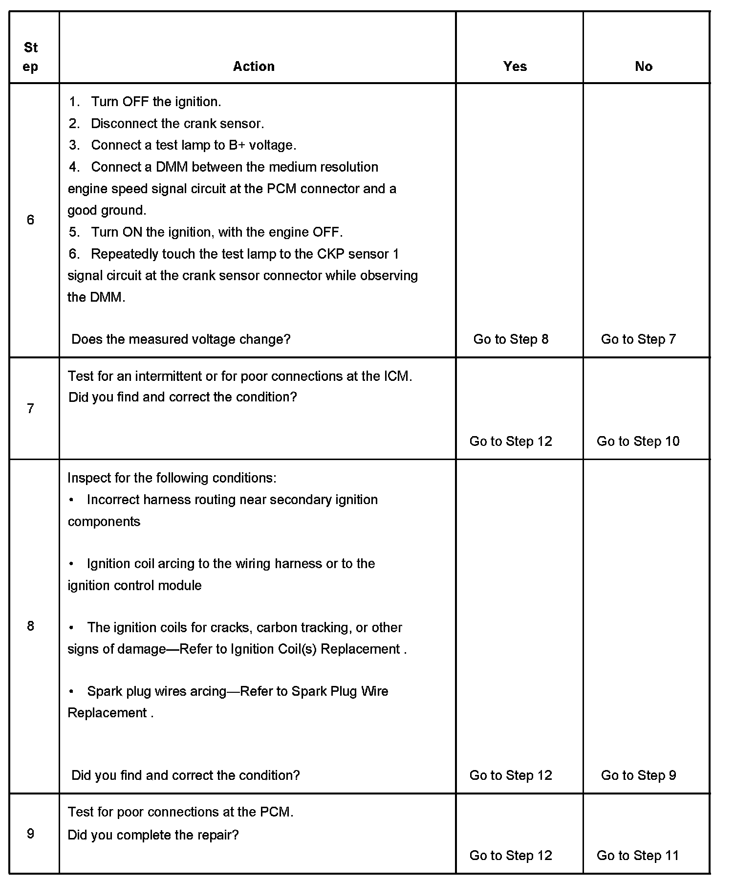 The CKP sensor shares power supply and low reference circuits with the camshaft position (CMP) sensor. If the PCM detects no 18X reference pulses in one engine cycle, DTC P0336 sets.