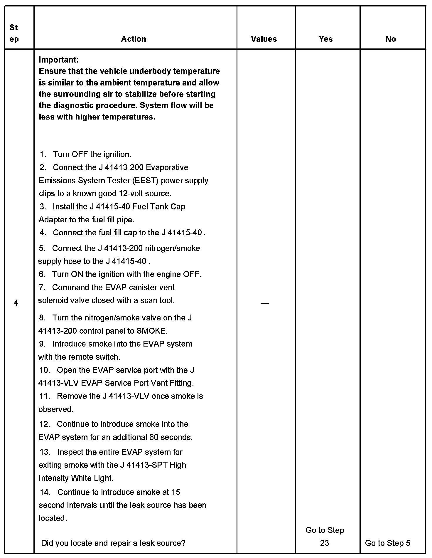 - To help locate intermittent leaks, use the J 41413-200 Evaporative Emissions System Tester (EEST) to introduce smoke into the EVAP system. Move all EVAP components while observing smoke with the J 41413-SPT High Intensity White Light.
