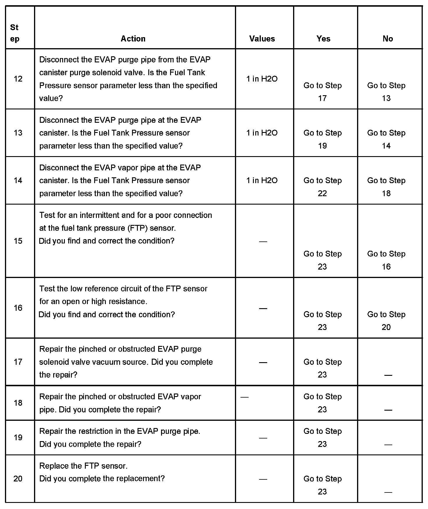 6. This step verifies proper operation of the fuel tank pressure (FTP) sensor.