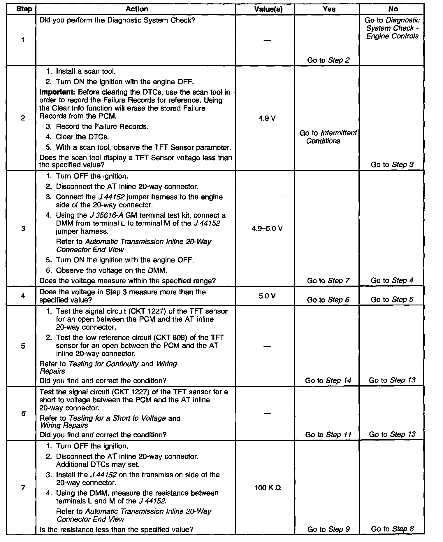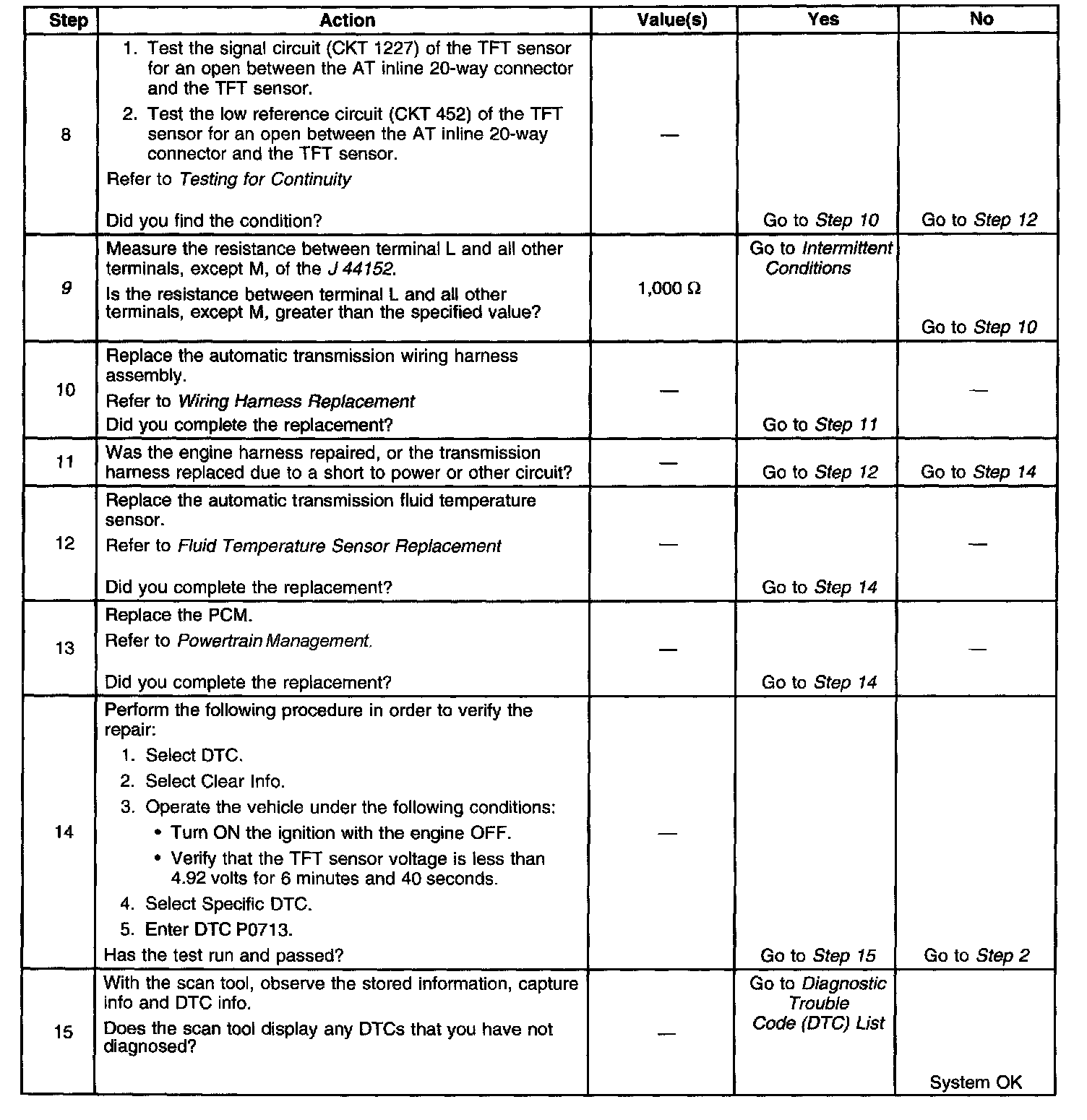 9. A short to the TFT sensor signal circuit and any other circuits in the transmission harness could cause the TFT sensor to open.