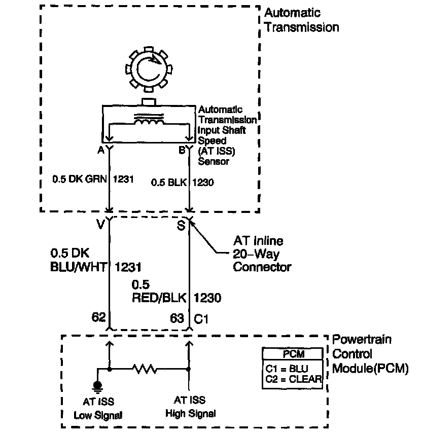 There is a fixed air gap between the sensor and the teeth on the sensor reluctor wheel. The AT ISS sensor input is used by the PCM in order to control line pressure, TCC apply and release and transmission shift patterns. This sensor is also used to calculate the appropriate gear ratios and TCC slippage.