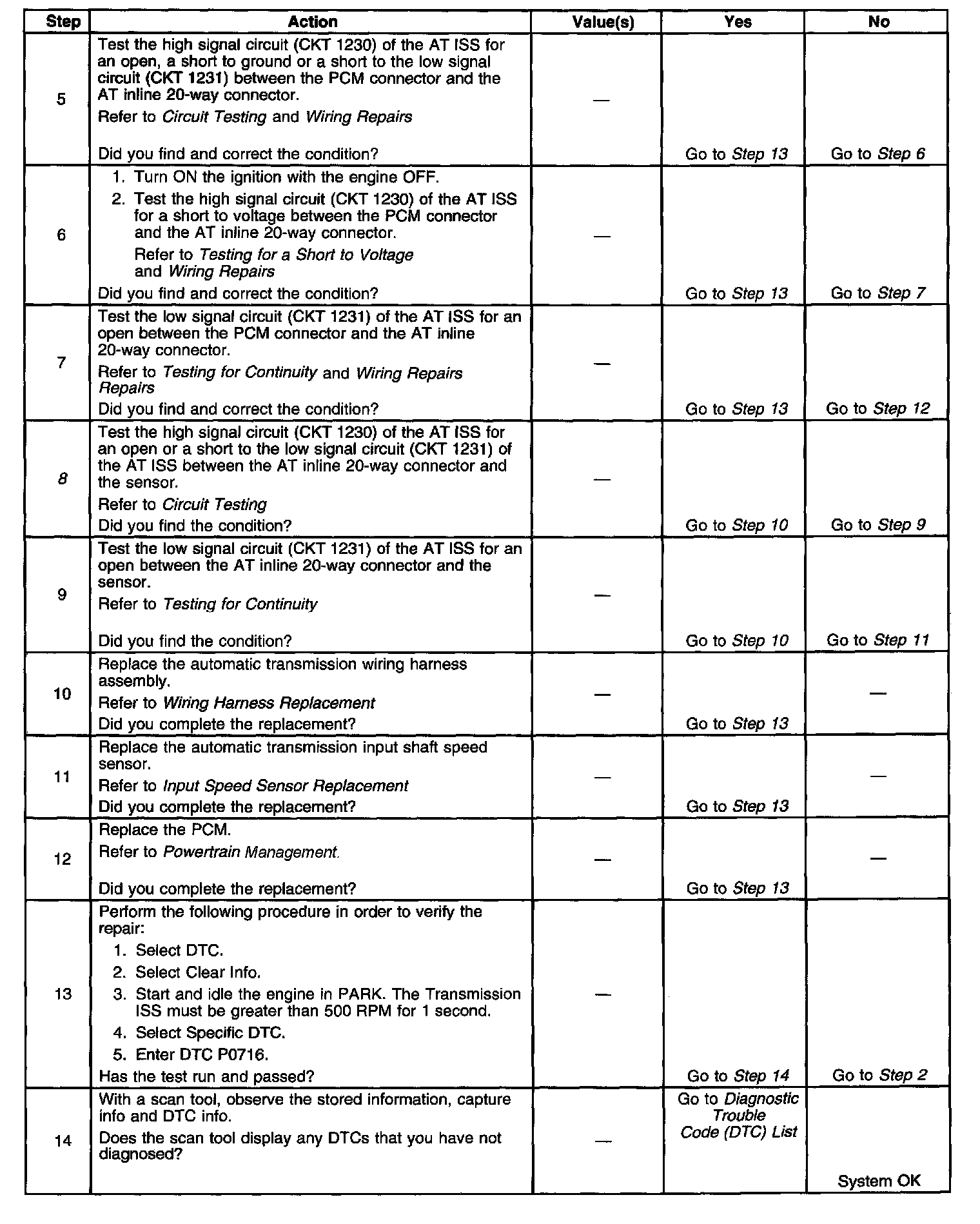 If the PCM detects an unrealistically large change in the AT ISS sensor high signal in a short period of time, then DTC P0716 sets. DTC P0716 is a type B DTC.