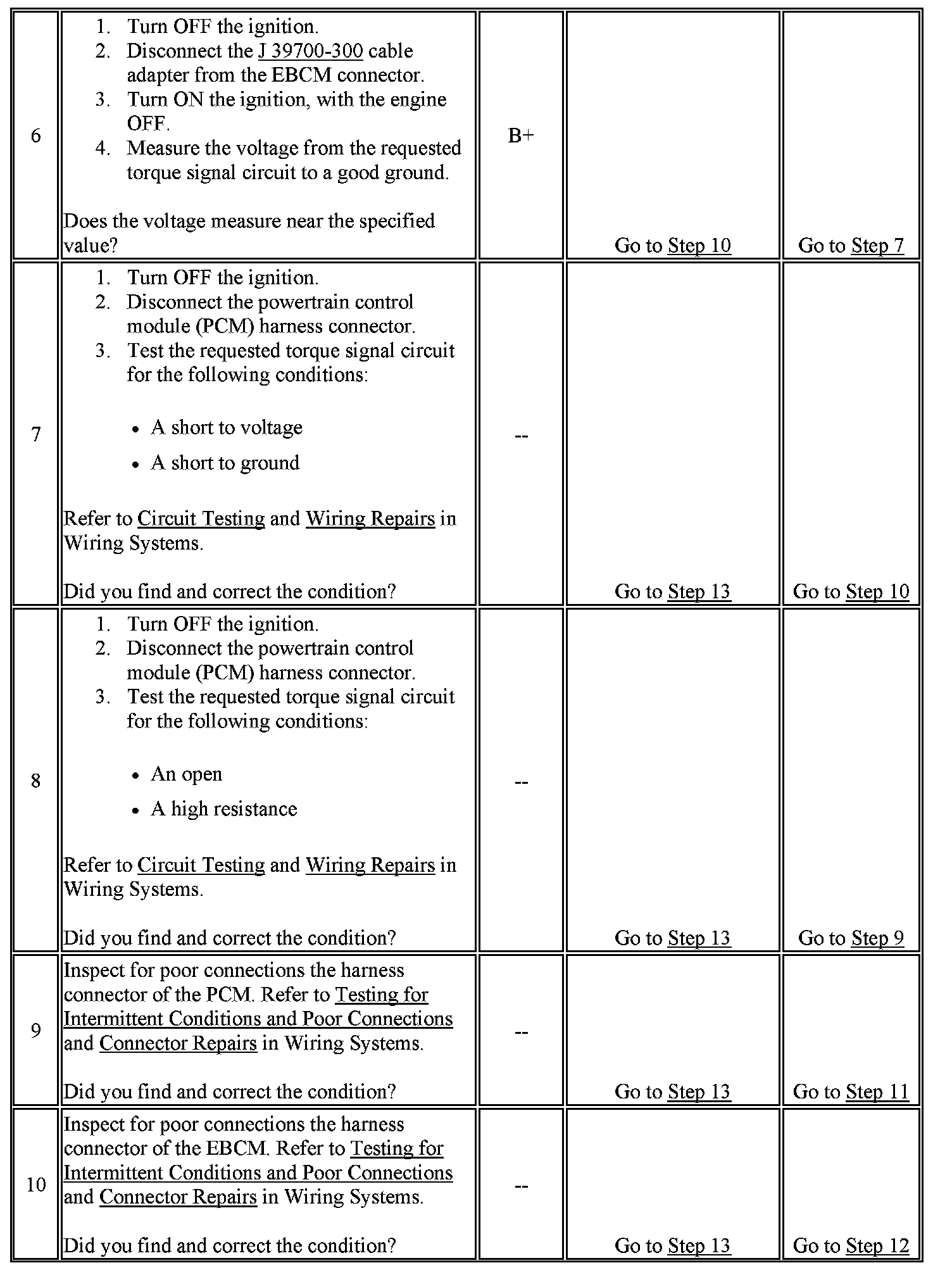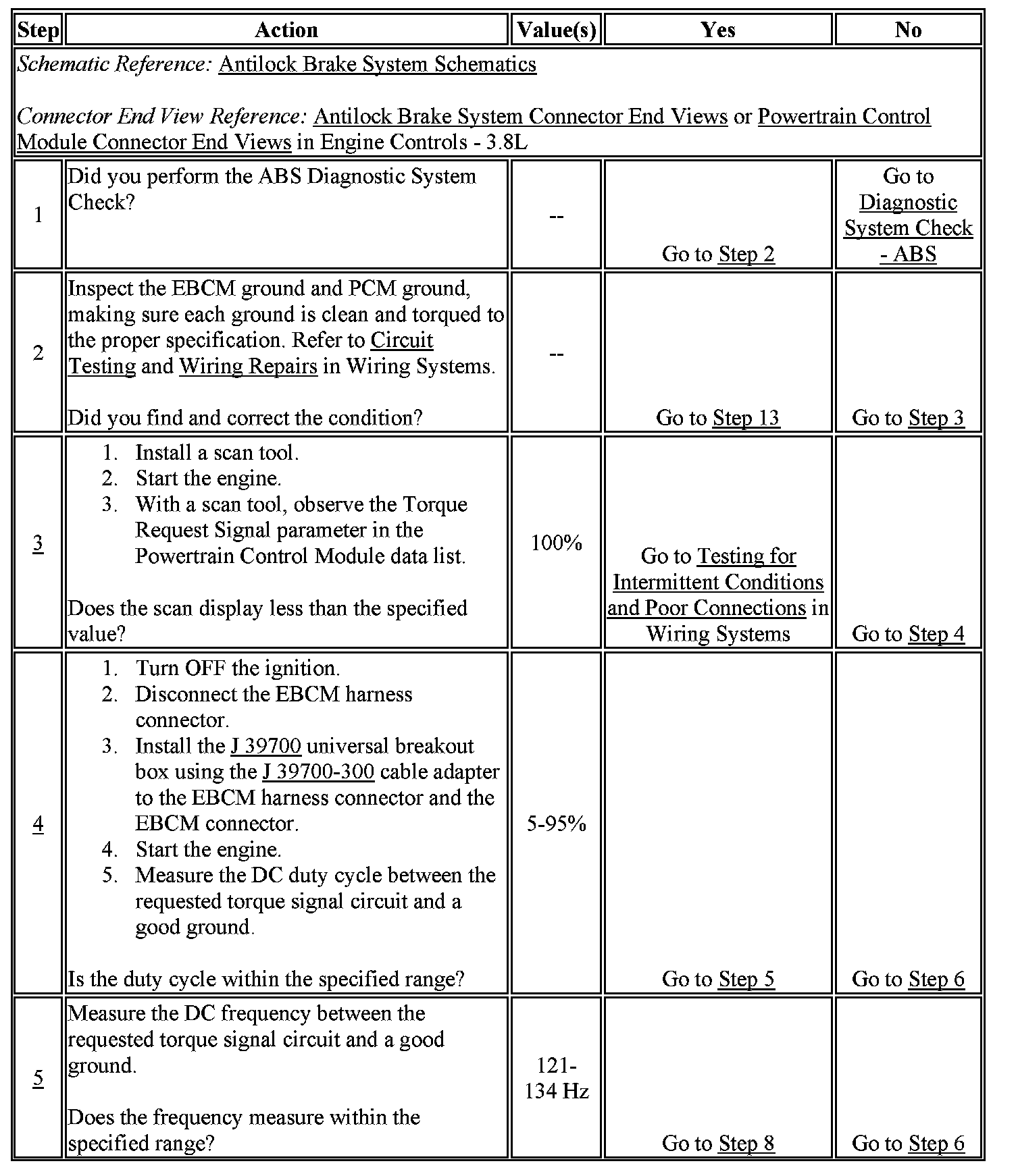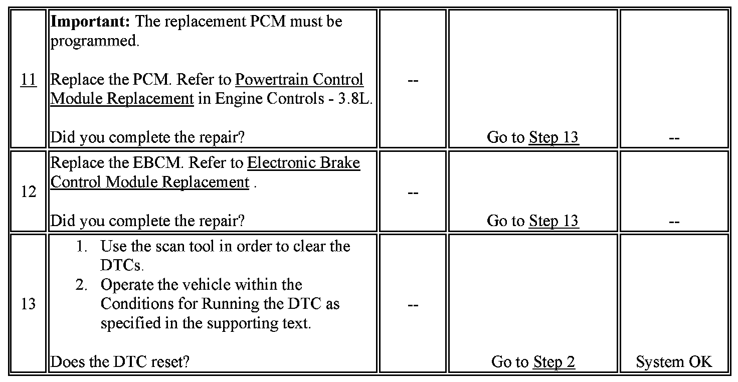 - The ECM diagnoses the requested torque signal circuit and sends a serial data message to the EBCM indicating that a fault is present.