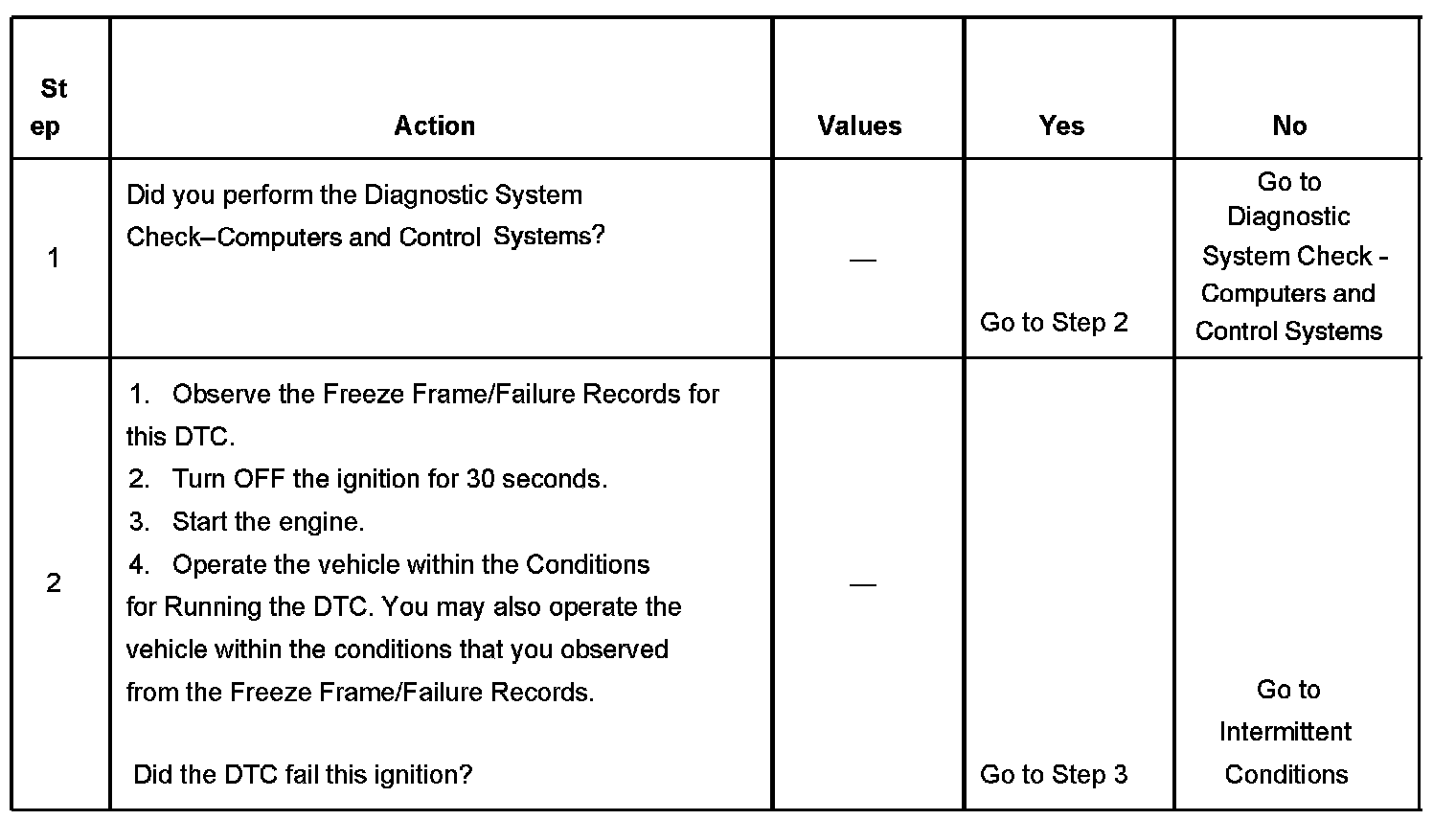 - If the condition is intermittent, refer to Intermittent Conditions. Diagnostic Strategies