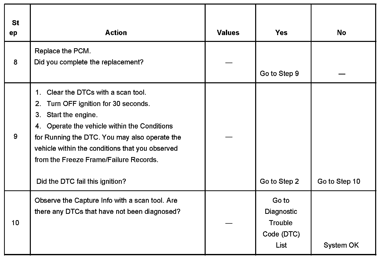 - A current DTC, Last Test Failed, clears when the diagnostic runs and passes.