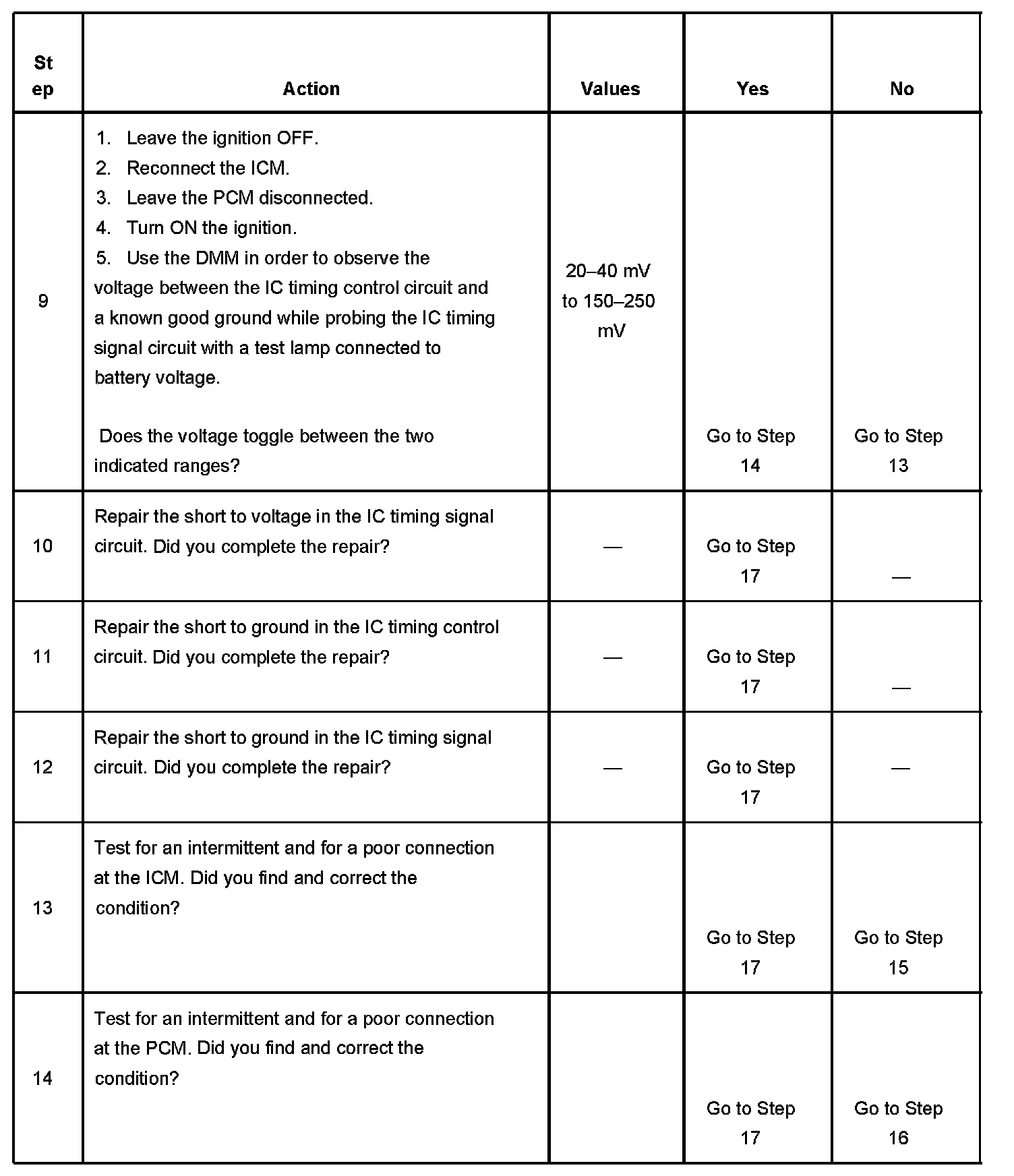 The PCM detects a short to voltage in the IC timing signal circuit.