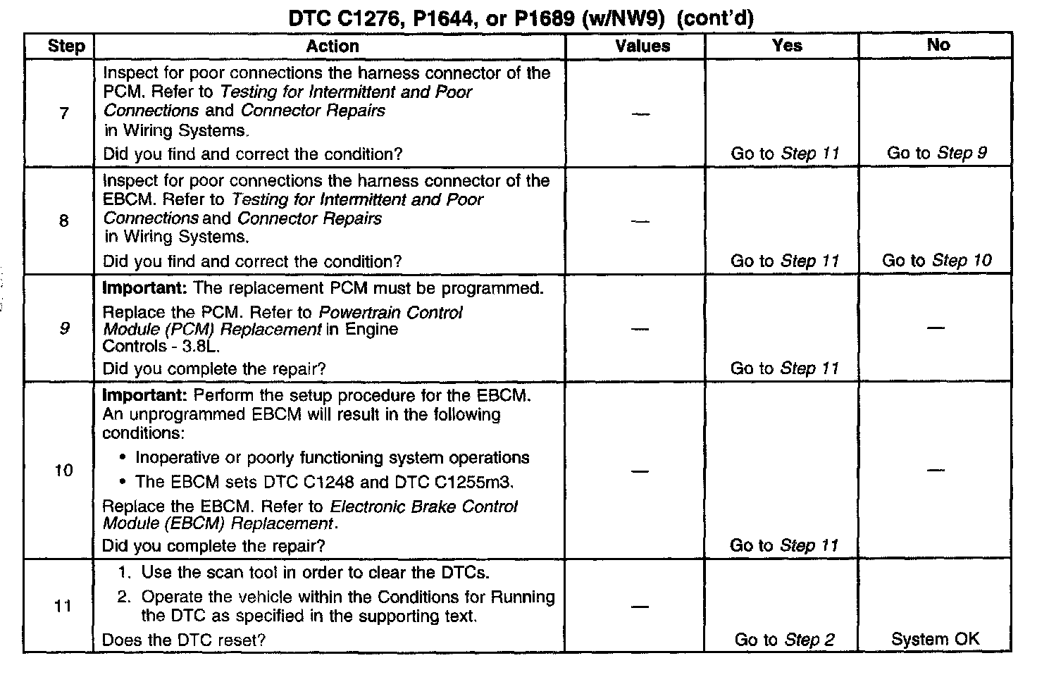 DTC C1276, P1644, Or P1689 (W/NW9) (cont'd):