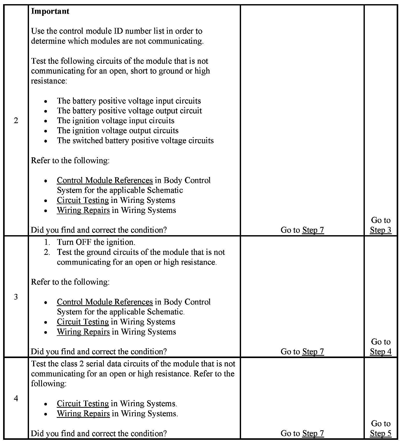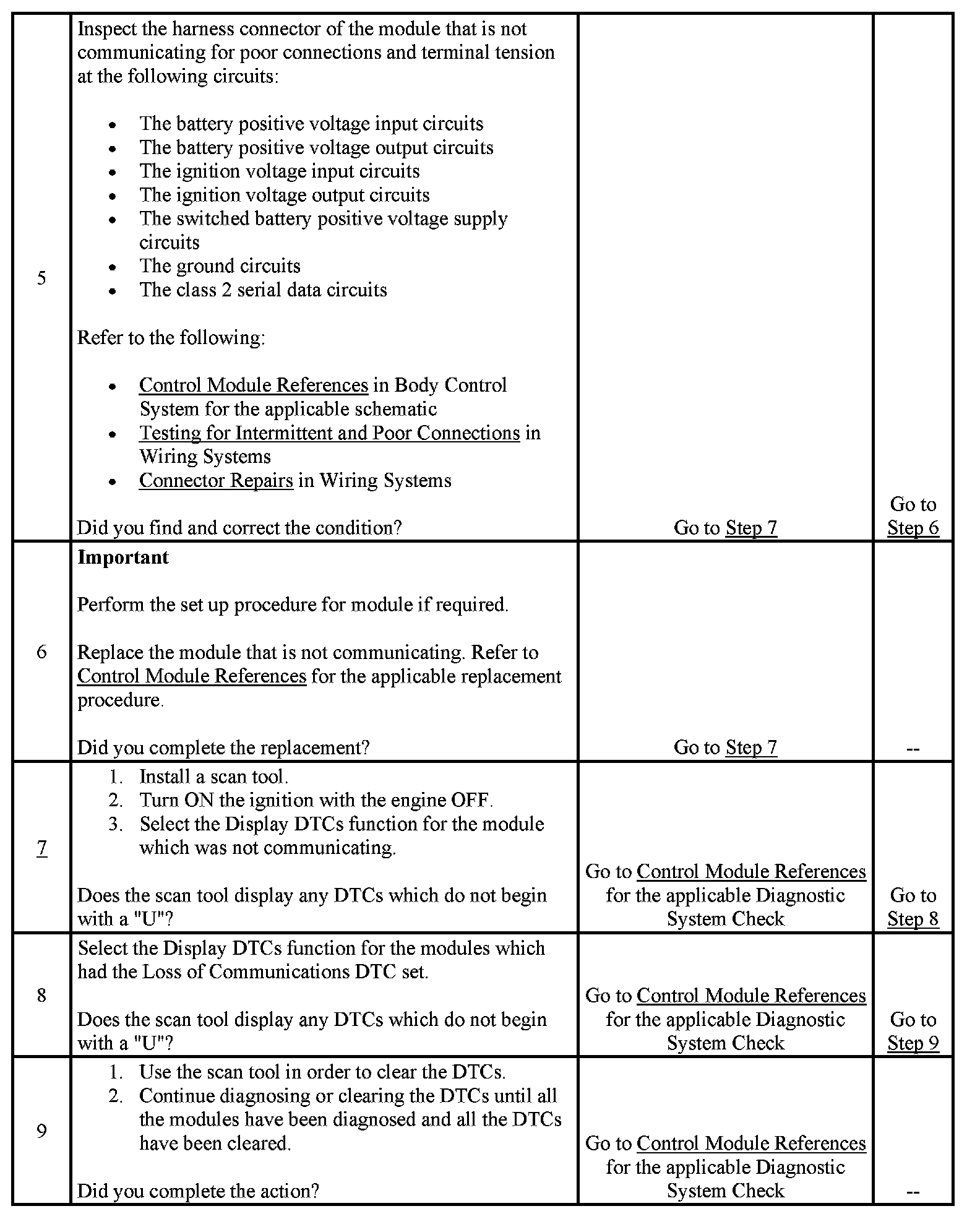7. The module which was not communicating on the class 2 serial data circuit may have set Loss of Communication DTCs for those modules that it was monitoring.
