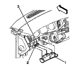 1. Remove the left IP trim plate by pulling the trim plate (1) toward the rear of the vehicle.