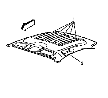 Caution: Do not attempt to repair or alter the head impact energy-absorbing material glued to the headliner or to the garnish trims. If the material is damaged, replace the headliner and/or the garnish trim. Failure to do so could result in personal injury.
